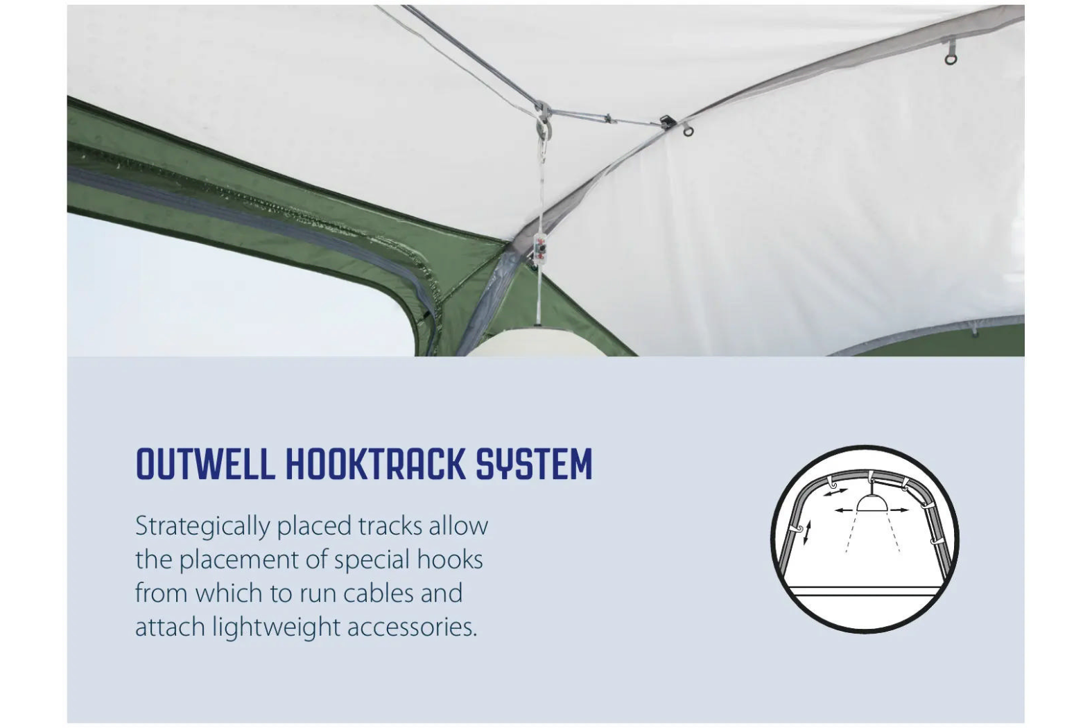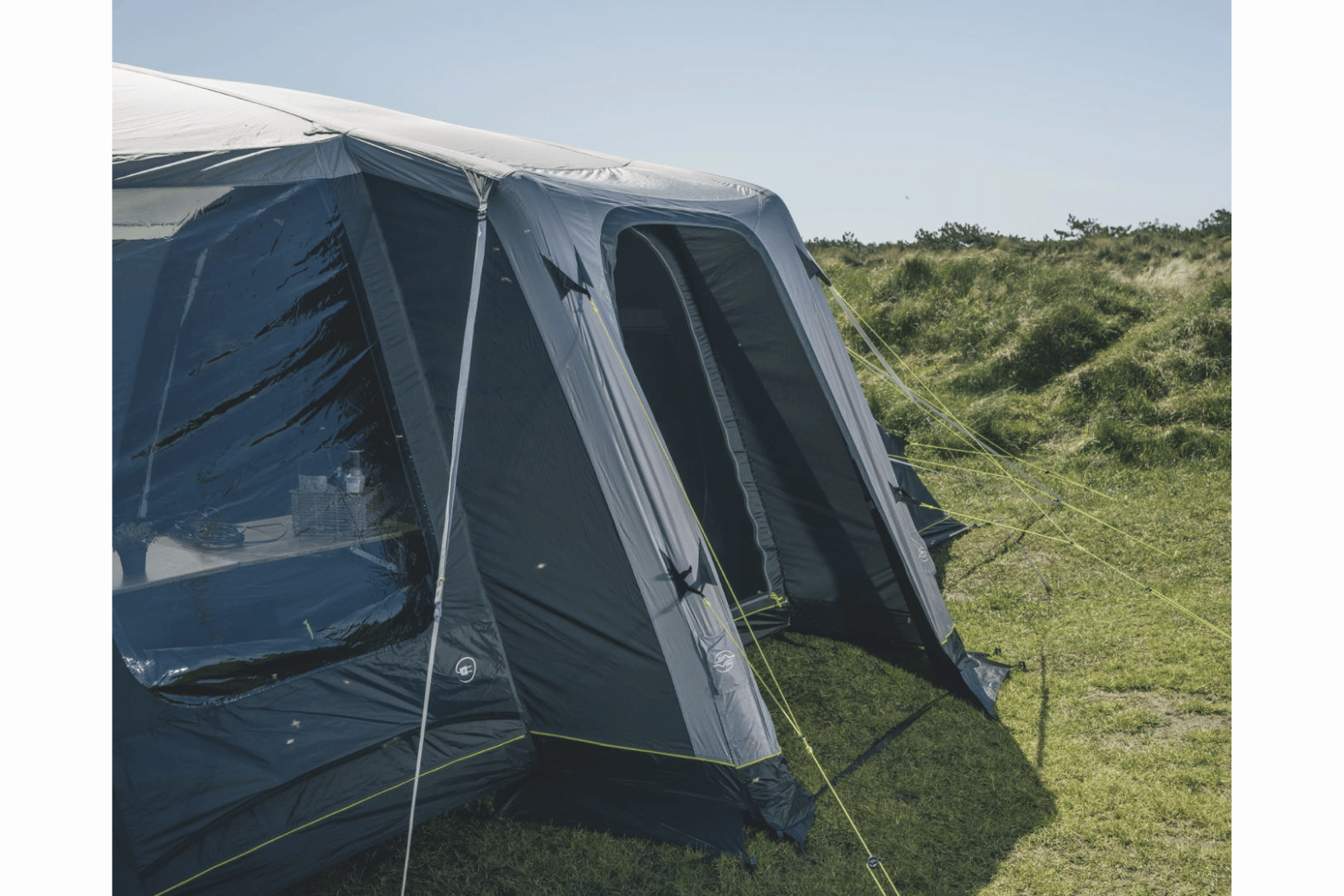 The Outwell Montana 6 Air Tent is an evergreen with its proven design, featuring a side porch for a sheltered entrance, a fully sewn-in groundsheet, and a sloping front in a contemporary style. This fully featured tent is prepared for the patented Outwell Nightlight System and is made with premium materials.