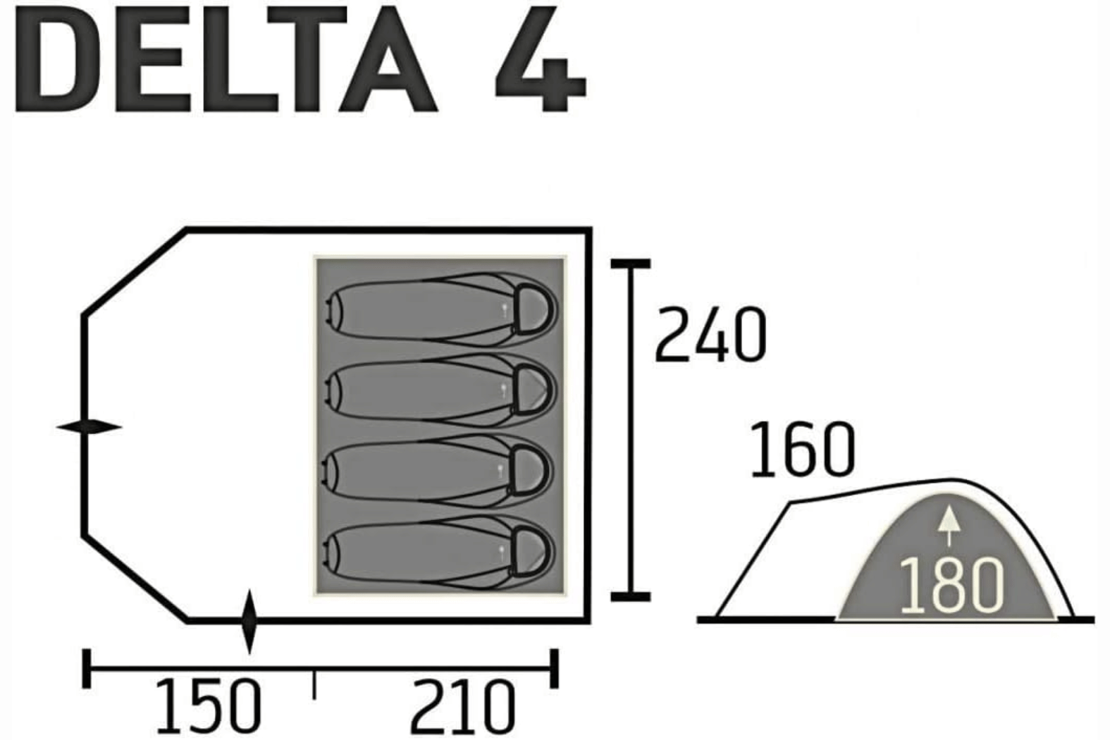 The outer tent keeps to its high waterproof expectations thanks to the 4,000 HH/water column rating and sealed seams – it does its job, even in heavy and prolonged rain. Furthermore, large ventilation openings ensure that the Delta 4 Tent remains nice and cool – perfect for those rainy-day gatherings inside your 150cm-long porch.