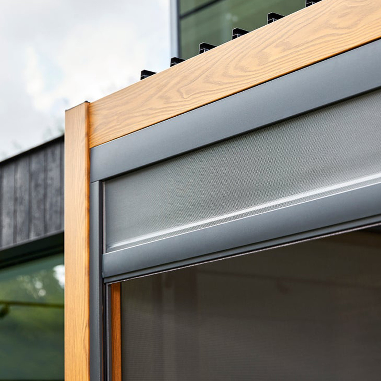The Privacy Screen for the Royce Cube Pergola makes the perfect addition to make your garden area more private adding more protection against the elements. When you wish to open up your pergola simply push the screen up, back into the aluminium roller cassette. The screens come in 3 different sizes of 3m, 3.6m and 4m to fit your choice of Royce Cube Pergola