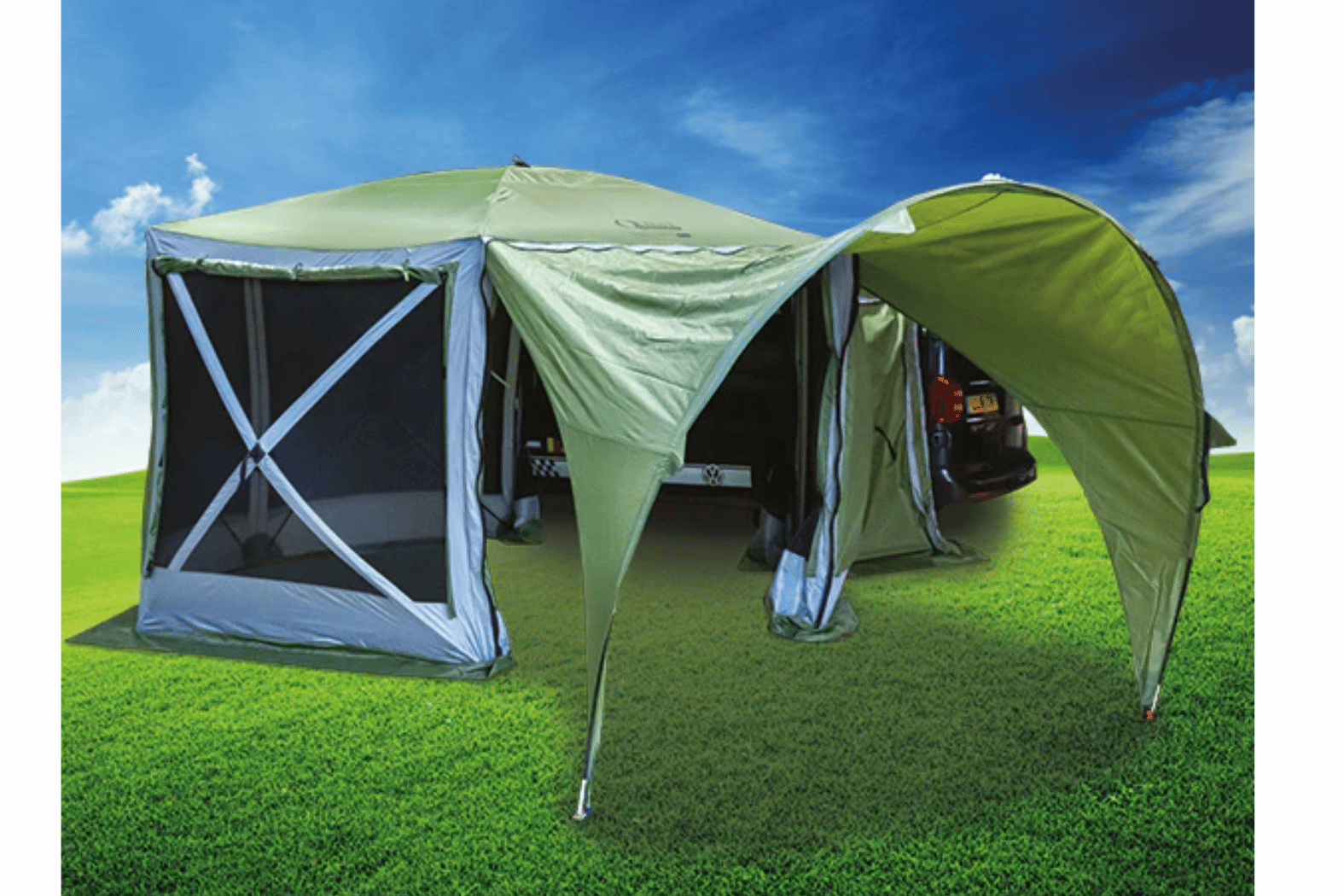 The Screen House Pro canopy is built to fit both the Screen House 4 Pro and Screen House 6 Pro. It simply zips onto the existing accessory zip on your Screen House Pro and instantly gives you a large canopied area to the front.
