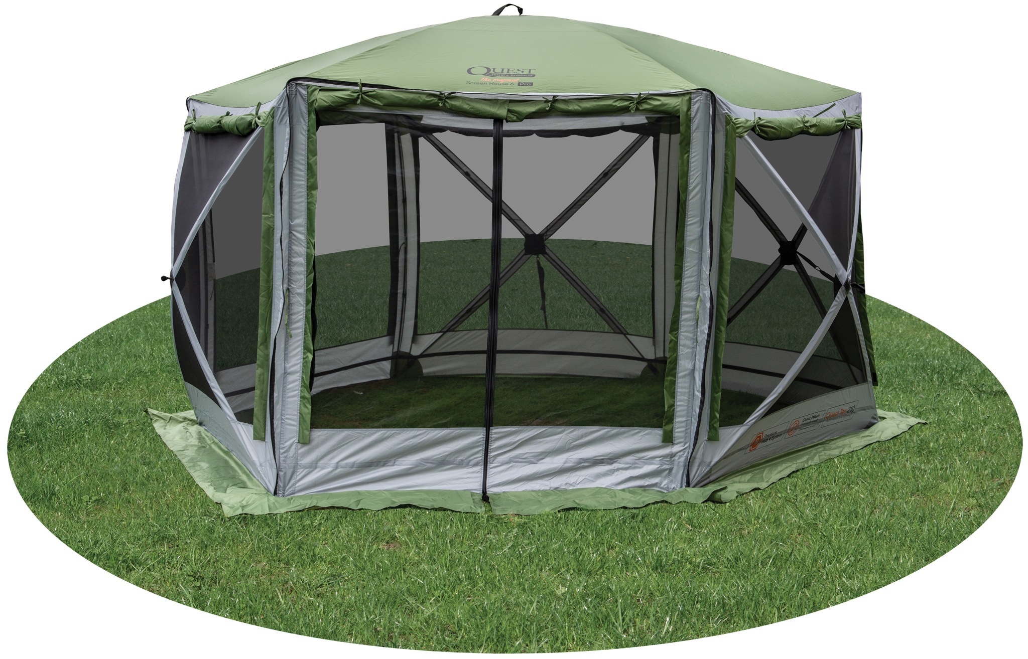 Equipped with premium Quest No-Chill mesh panels, it also includes sewn-in and fully zipped Quest-Tec 210 sidewalls, providing unmatched versatility. You can lower the sidewalls for privacy, open the external blinds on the windows to let in light and views, or roll up the entire sidewall to reveal the high-quality No-Chill mesh sides, ensuring comfort in both windy and sunny conditions.