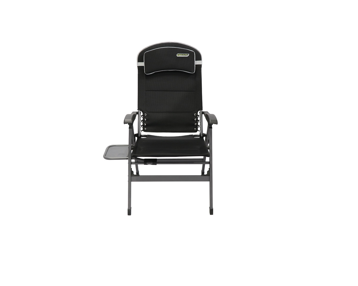 This premium chair features a padded seat and backrest, providing outstanding comfort for long periods of sitting. Furthermore, the ergonomic design promotes natural posture and reduces strain, allowing you to relax fully at the campsite, by your caravan, or on your patio. In addition, solid armrests offer excellent support when getting in and out of the chair, making it both practical and accessible for all users.
