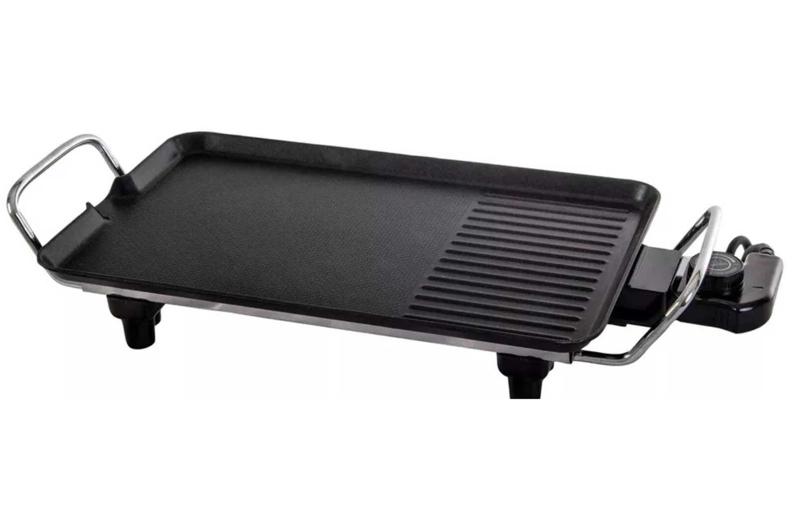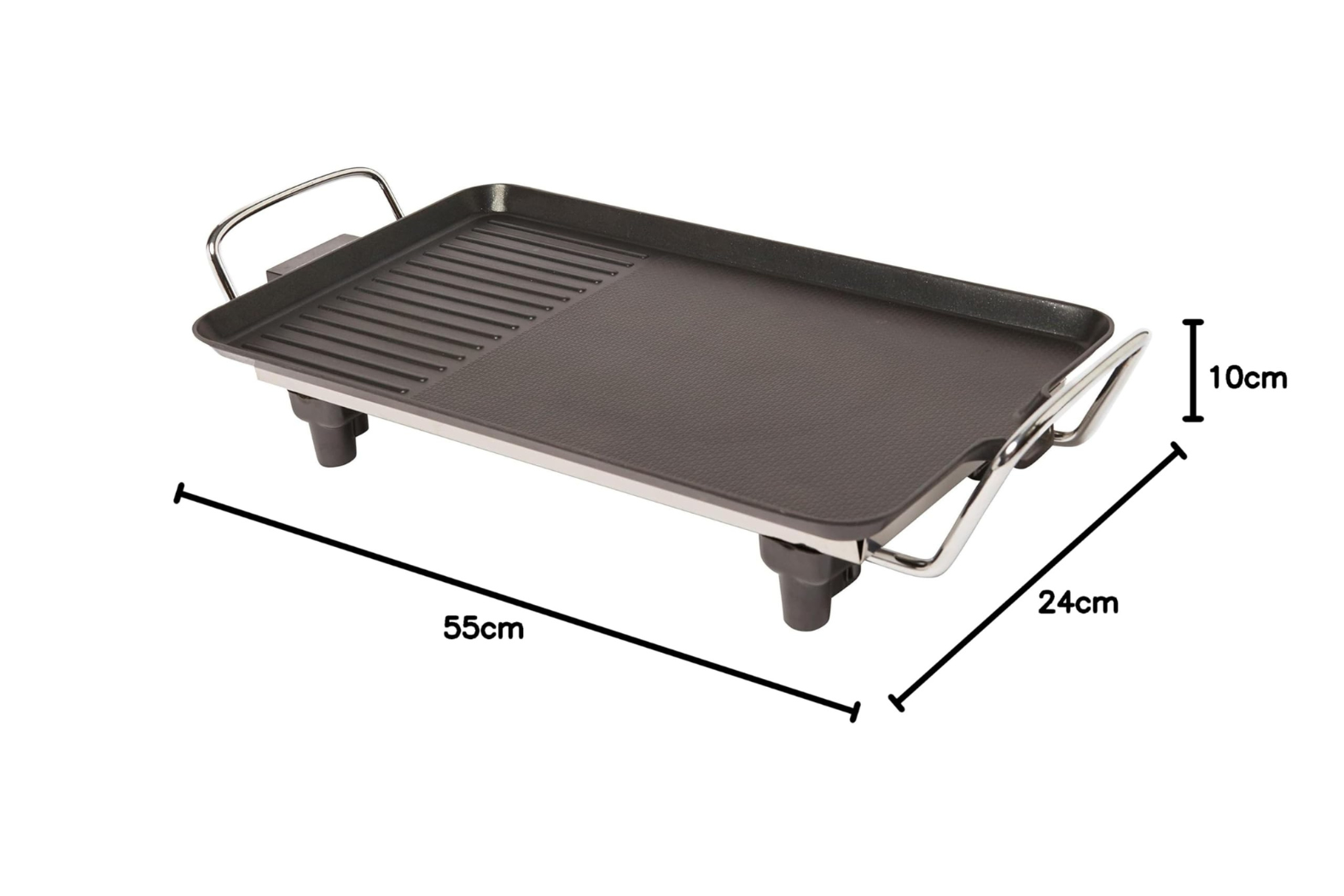 The Quest Low-Wattage Large Healthy Griddle delivers fast, versatile cooking for camping, caravanning, or home use. Moreover, this low-wattage griddle consumes less electricity and draws less current than standard units. In addition, the Quest Large Griddle features a dual surface—one flat cooking area and one ridged grill area—for simultaneous styles of cooking. Furthermore, its large size lets you cook breakfast and dinner without over-crowding the plate.