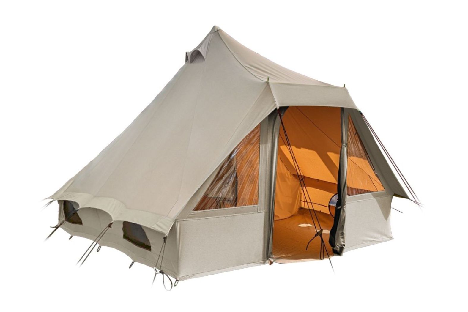 The Quest Leisure Gobi Bell Tent has to be one of the smallest premium-quality cotton canvas tents on the market. While retaining a small floorplan, elevated sides help to give more usable space for camping. Often these tents are used on permanent glamping sites as they are built to last, an extra thick PVC groundsheet makes this a fantastic family-friendly tent, or perfect for a couple who want that bit more space. Sleeping up to 4 adults in this square variant, this simple steel-framed tent can be put up by one person, making this one of the easiest tents to erect.