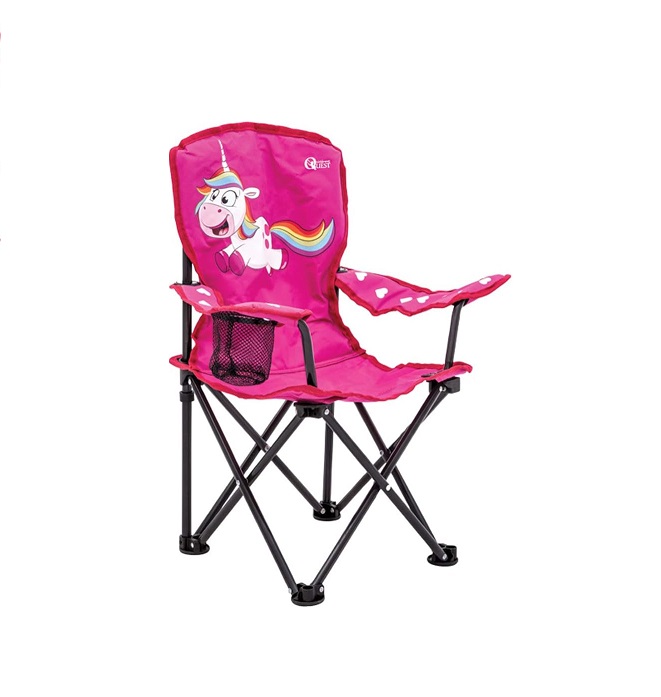 Built with a powder-coated steel frame, the Quest Leisure Children’s Folding Unicorn Chair offers excellent strength and balance without adding unnecessary weight. Moreover, the secure locking mechanism prevents accidental folding, keeping small fingers safe during use. In addition, the chair folds and unfolds effortlessly, making it perfect for family camping trips or quick garden playtime. Furthermore, it includes a matching carry bag for simple transport and compact storage—ideal for caravans, cars, and campers.