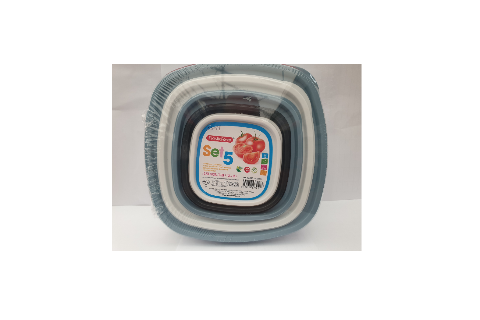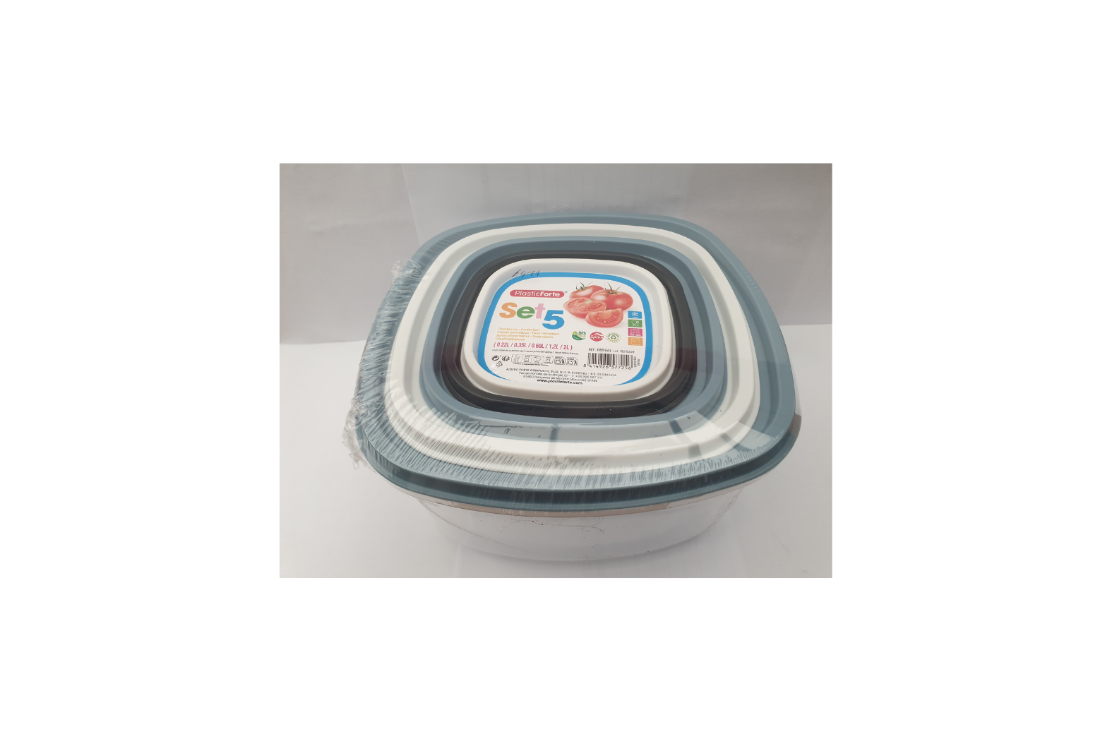 Set of 5 plastic storage containers perfect for packed lunches, storing small items keeping things fresh and items safe 3 different colours blue, white, black.