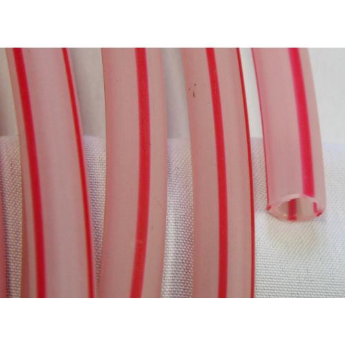 Rigid White hose with with red stripe.