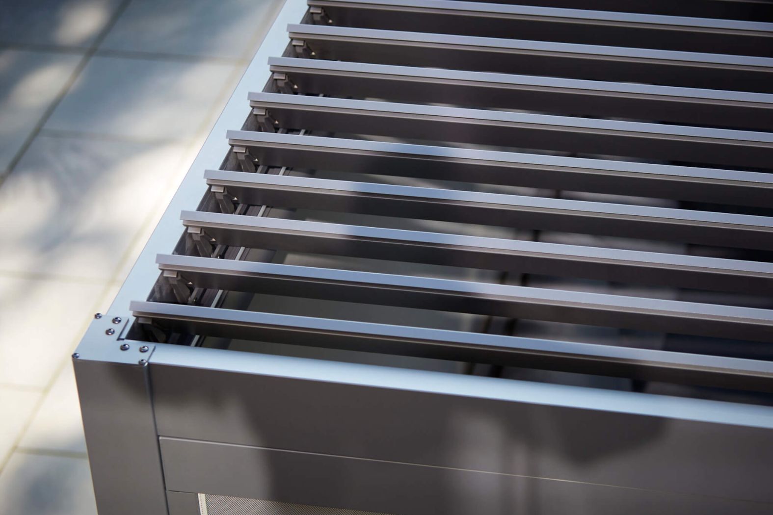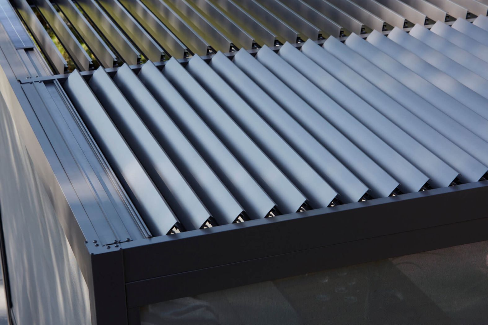 Split-Roof System of the Royce Cube Aluminium 3.6 x 6m Pergola Grey