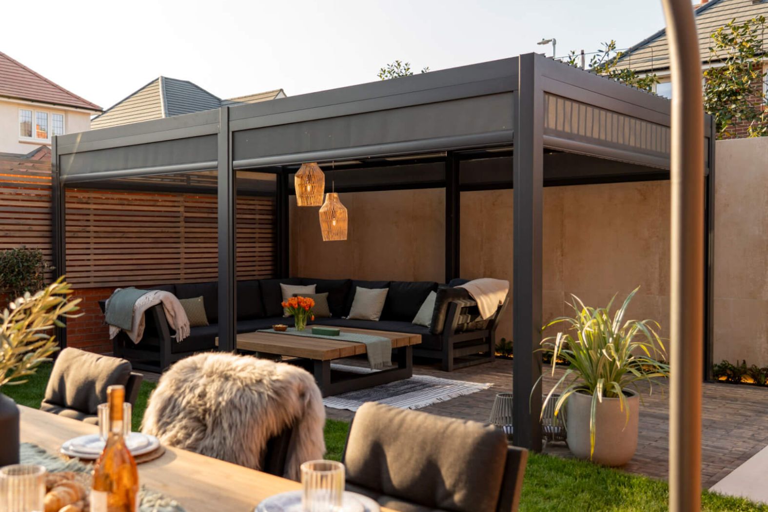 Engineered for year-round stability, this pergola is constructed from durable, rust-resistant aluminium. Moreover, it is wind-rated to approximately 51mph, ensuring a dependable structure even in exposed garden settings. In addition, the roof has been snow-load tested to around 27.5kg, offering extra reassurance during winter conditions. The Grey RAL 7015 powder-coated finish provides UV resistance and long-term colour retention, maintaining a premium appearance season after season.