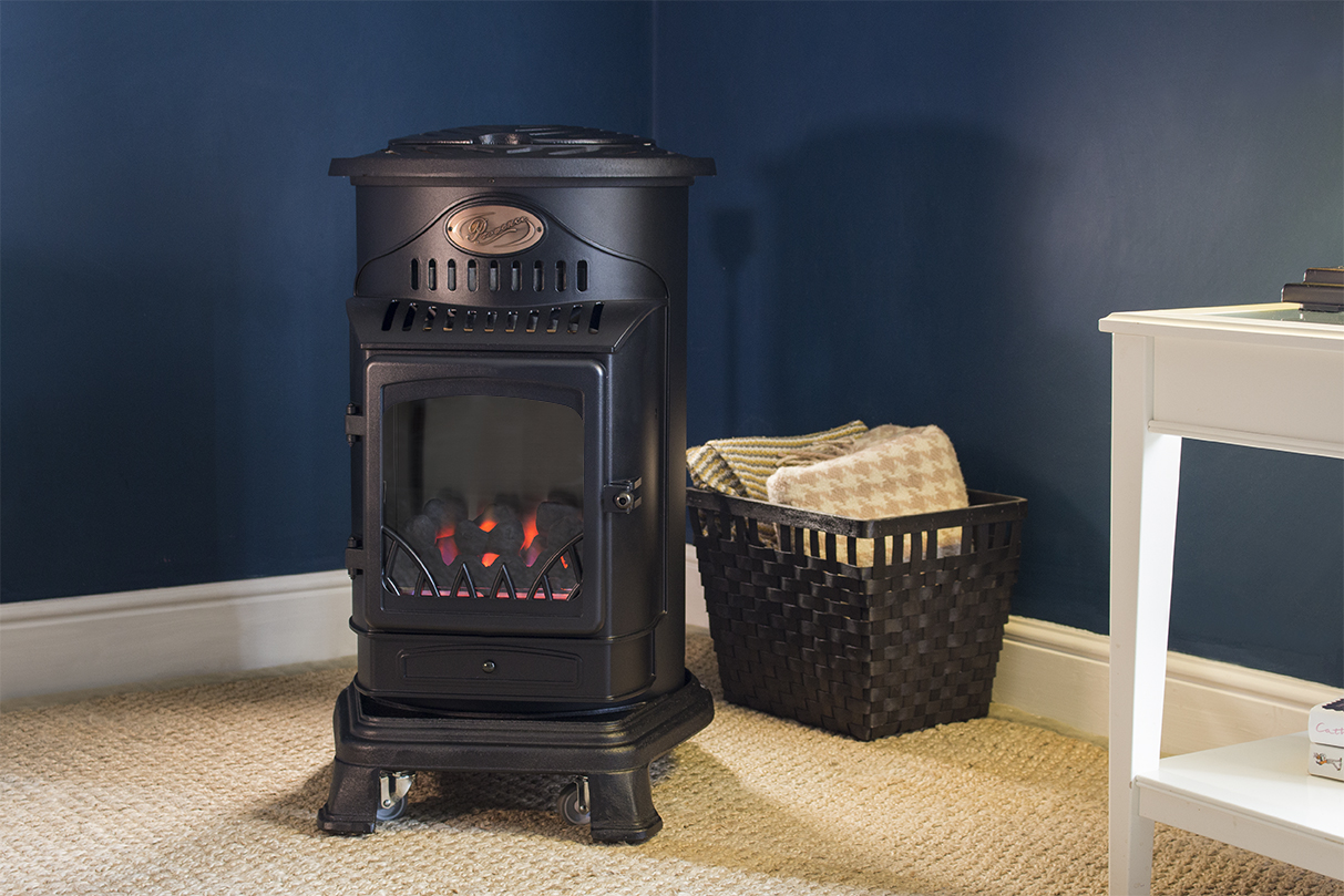 Runs on 7 kg or 15 kg butane cylinder — no mains, no flue needed