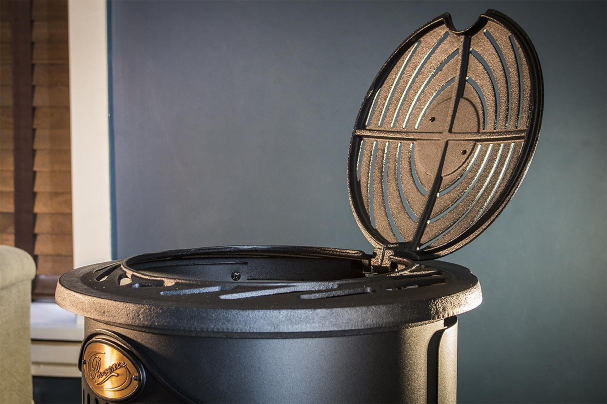 The heater features an automatic safety cut-off via an oxygen-depletion system, which reduces gas if carbon dioxide levels rise above safe levels — giving peace of mind when used in enclosed spaces (with recommended ventilation). Its single-knob control plus electronic ignition keep operation simple. The top-mounted controls stay hidden beneath a hinged lid for a tidy, classic stove-style look.