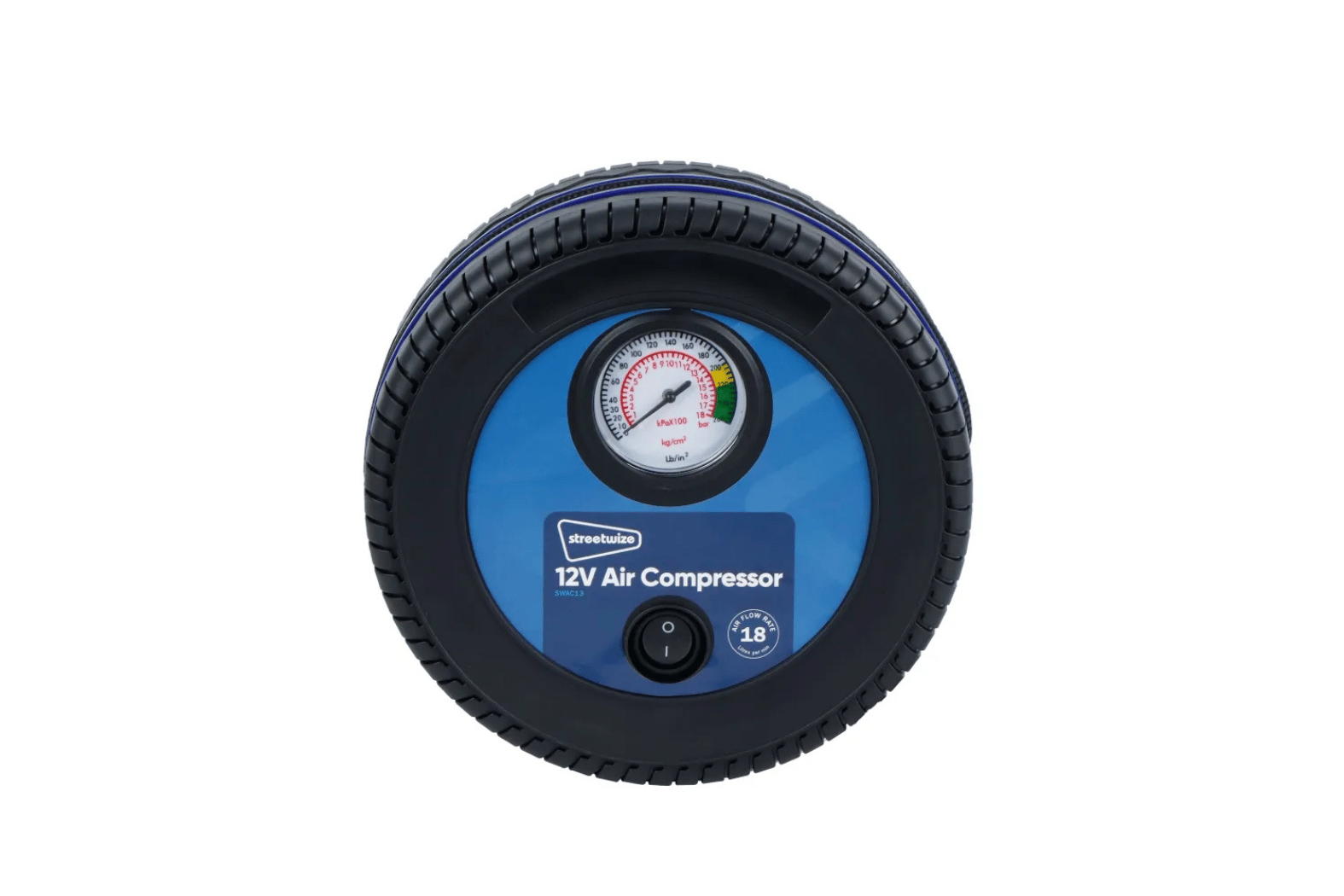 This Streetwize 250PSI 12V Tyre Shape Analogue Air Compressor With Auto Shut-Off is perfect for inflating tyres on cars, vans and motorcycles. It is also suitable for inflating balls, toys, mattresses and other inflatables.