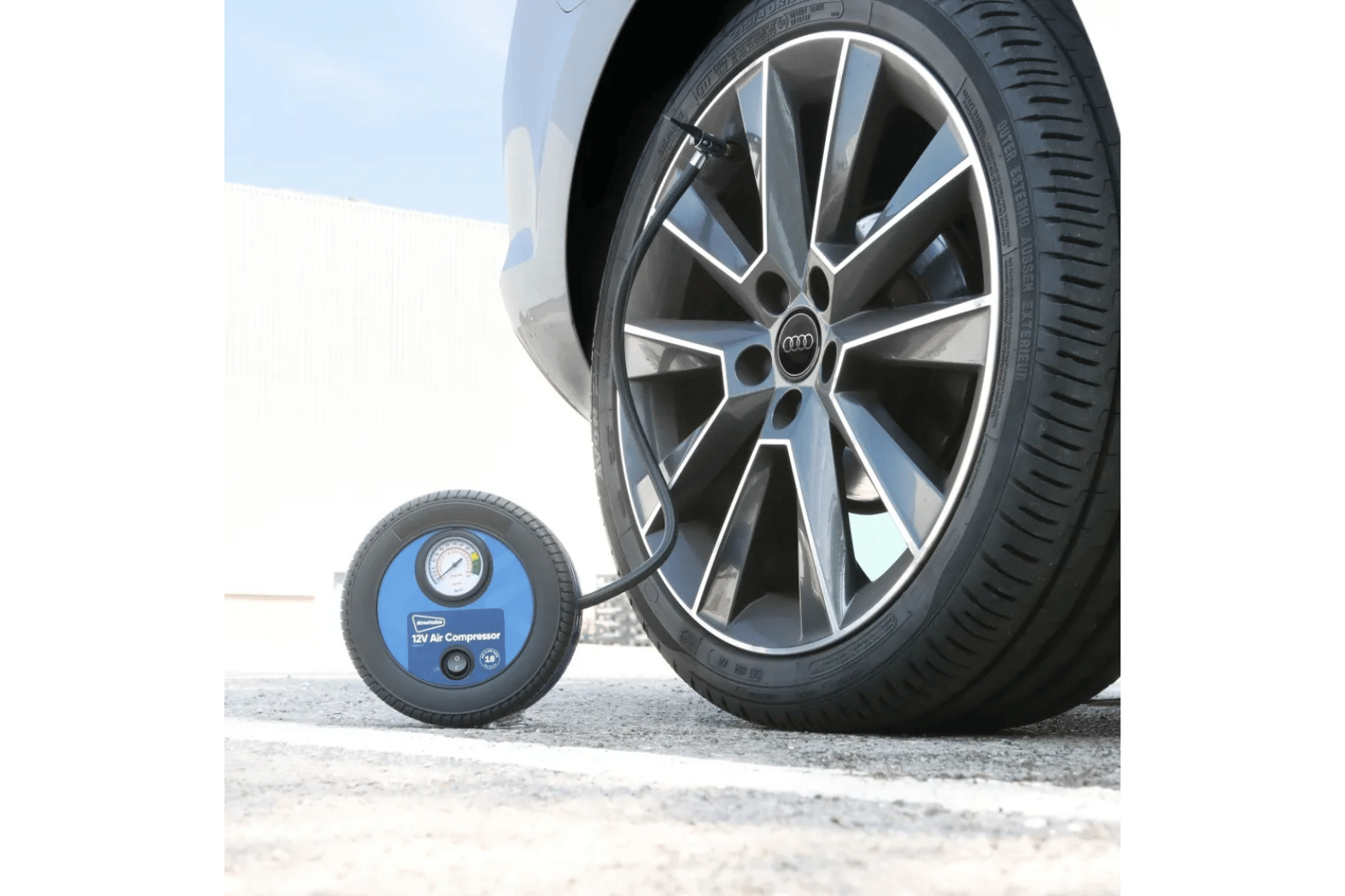 The air compressor is easy-to-use. Simply plug the compressor into your vehicle’s 12V socket and connect the air hose to your vehicle’s tyre or other inflatable item (using one of the supplied nozzles) and begin inflation by flicking the switch.