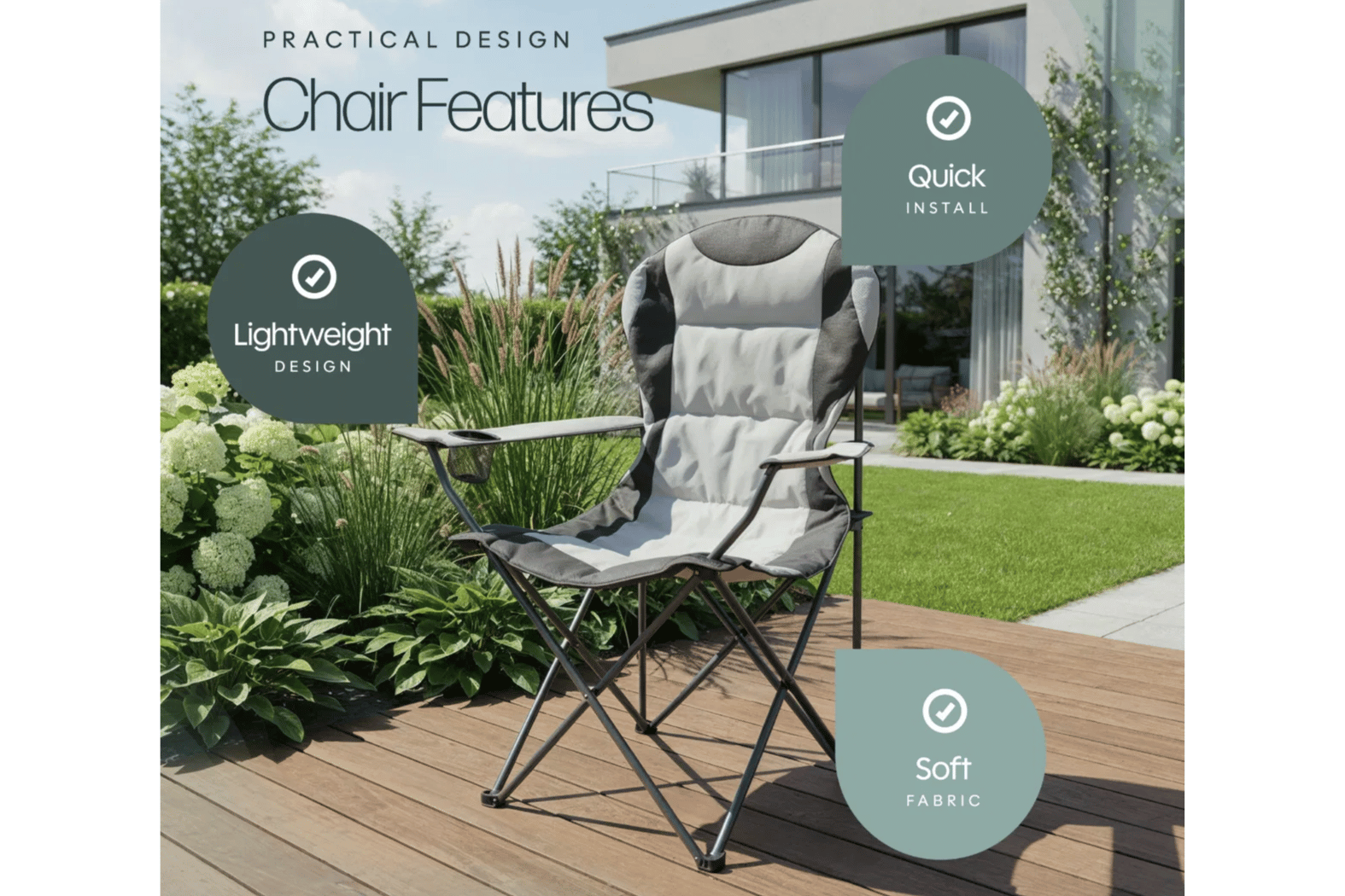 This high back folding chair is ideal for camping breaks, caravan trips, beach days or simply relaxing in the garden. The chair’s portable design, supportive structure and useful features make it a versatile choice for outdoor seating wherever you go.