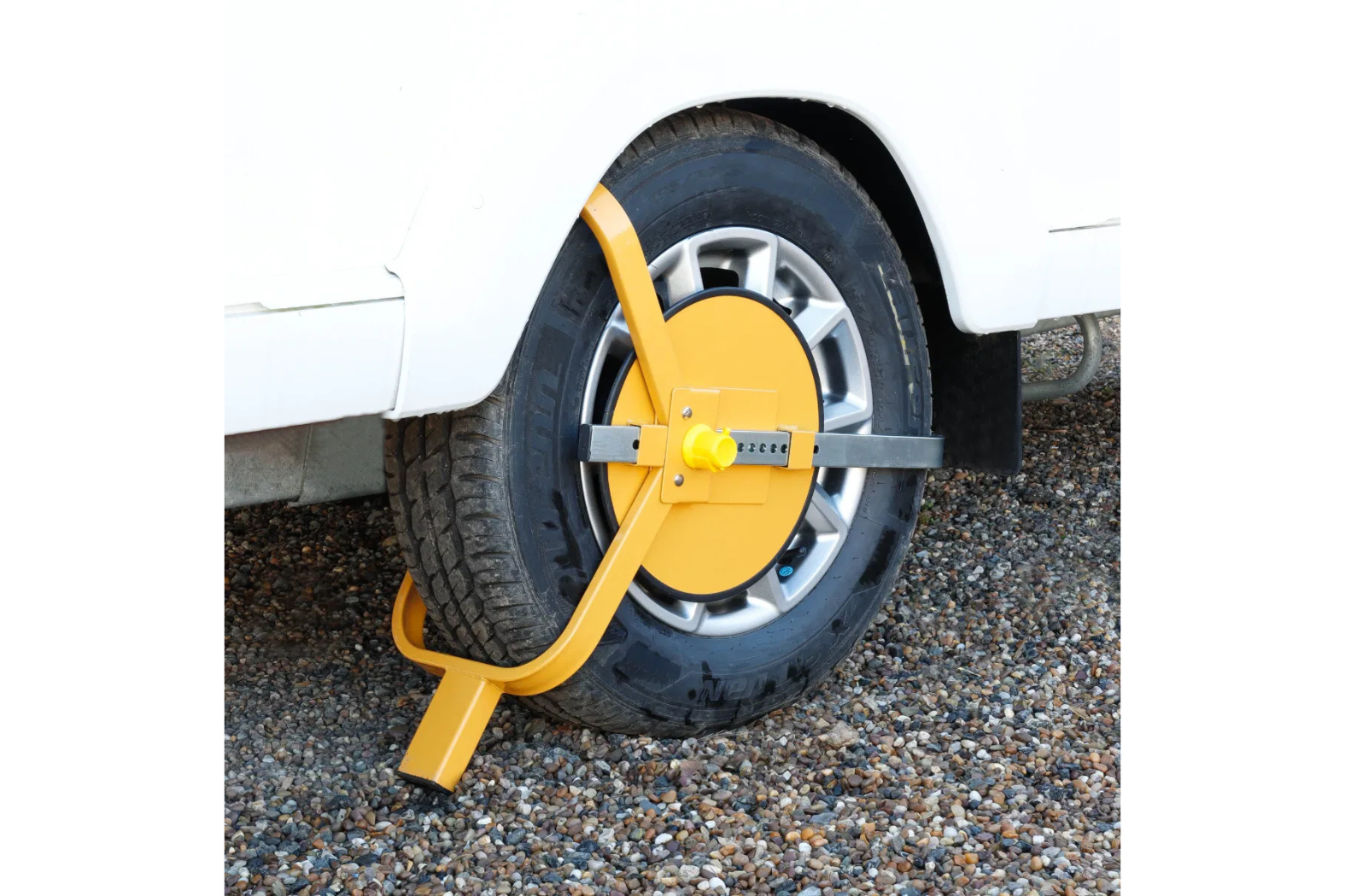 An added visible deterrent fitted in seconds. Ideal for Trailers and Caravans with wheels up to 10″