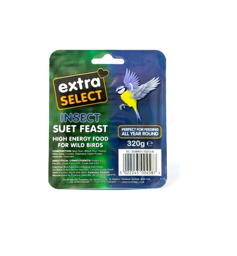 High-energy bird food block for all-year feeding. Contains suet, wheat, mixed seeds and dried insects.