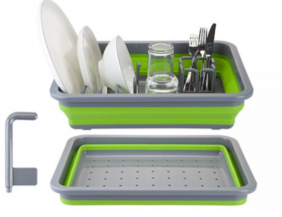 The Summit Pop! Is a collapsible dish and utensil drainer that is a Lime and Grey colour scheme. It can be whilst camping, caravanning or even at home!