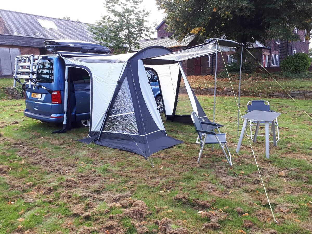 Crafted from 75D ACE-TECH fabric with a 6000mm hydrostatic head, the awning provides exceptional water resistance to keep you dry in heavy rain. Combined with a robust steel and fibreglass frame, this van awning offers stability and durability in various weather conditions. Flame-retardant materials add an extra layer of safety for peace of mind during your adventures.