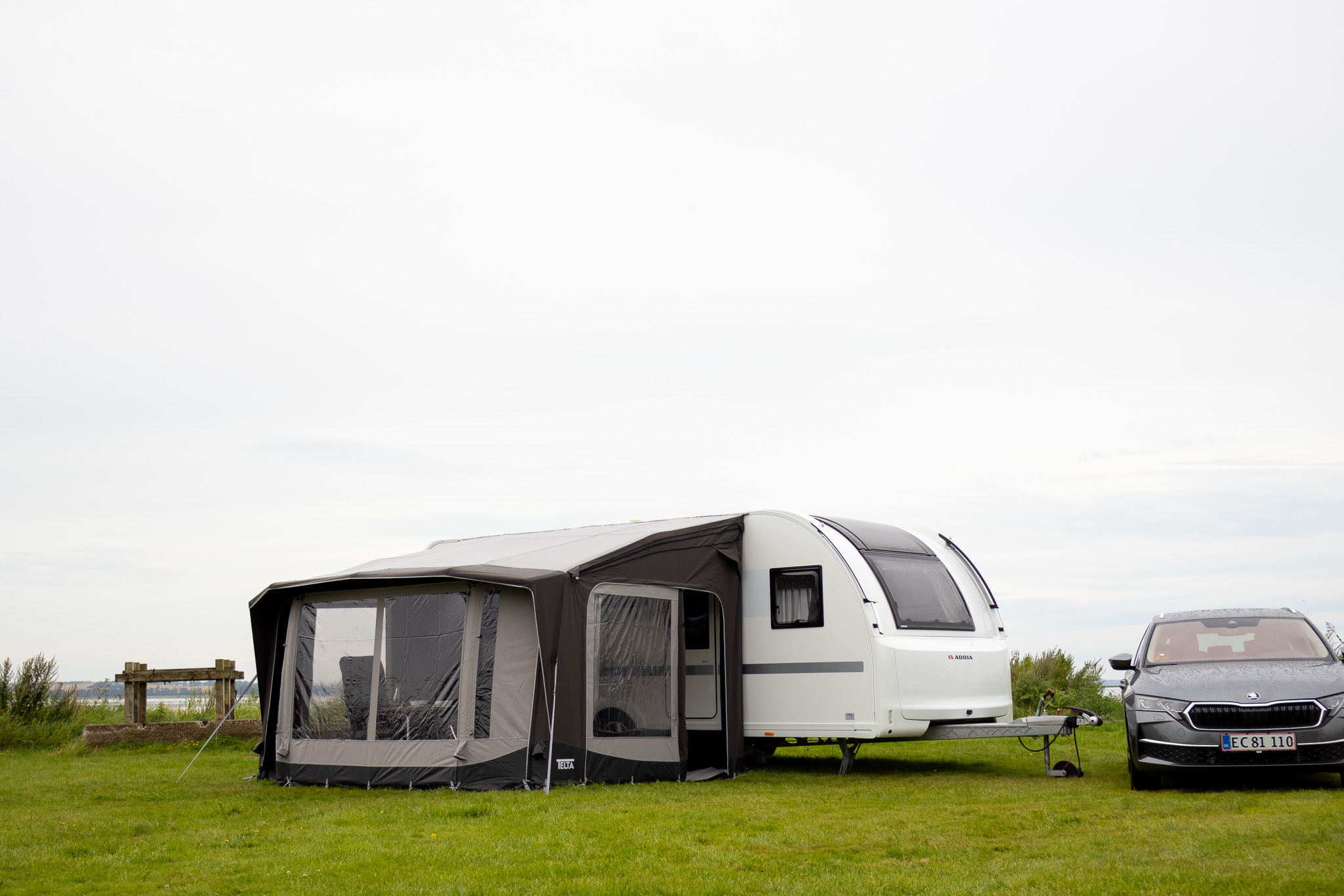 A double-pitched roof helps with water run-off whilst also ensuring that there is plenty of room for the vehicle door to be opened into the awning without catching on the roof.