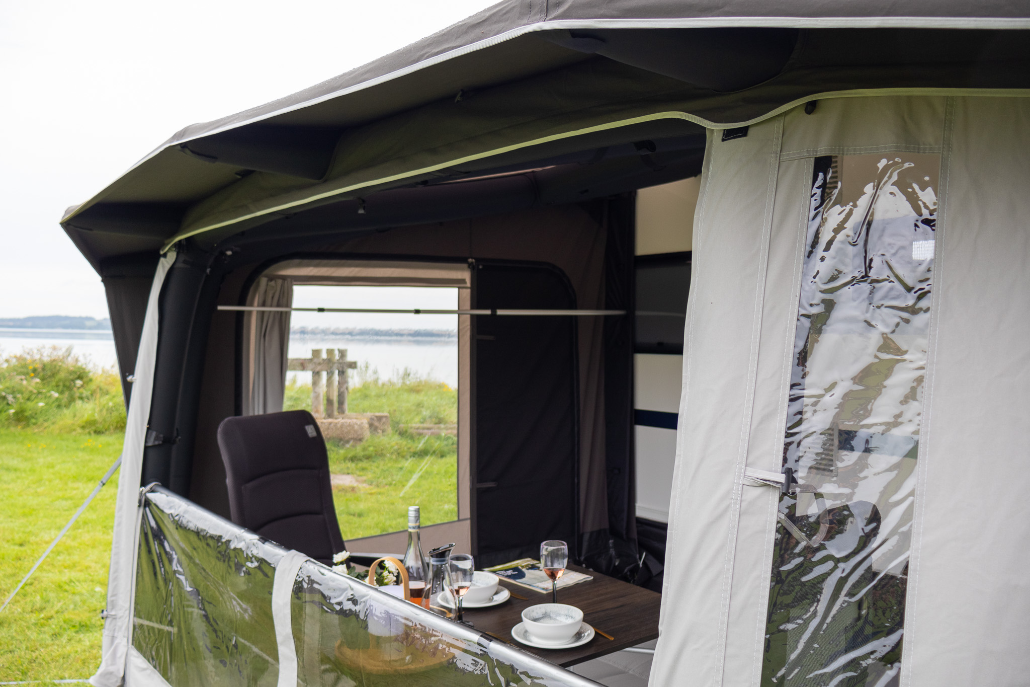 The front panel allows for the perfect space to put a dining table and chairs and as this awning is 300cm deep the table set should still allow for plenty of space within the awning for your stay
