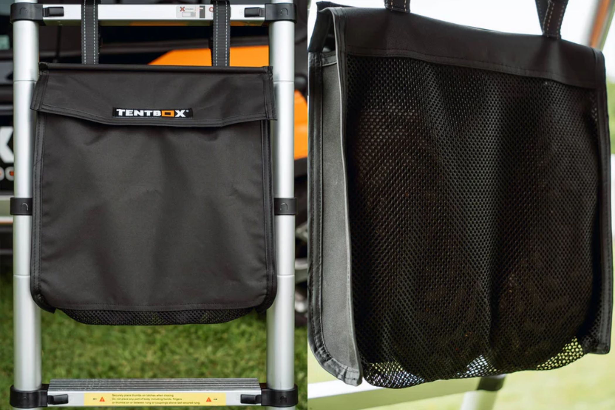 - Several hanging options: Either hang from your ladder or roof bars using the fabric loops or slide it into the base of a TentBox Lite