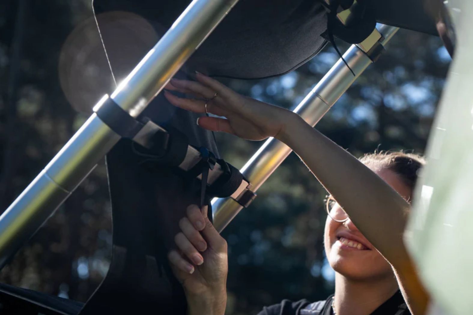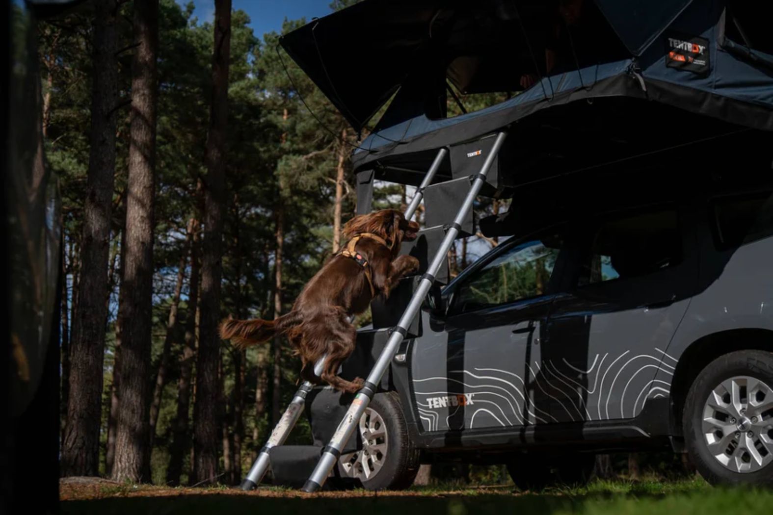 Turn any TentBox ladder into a comfortable stairway with the LadderSteps. Great for adults, kids, and dogs alike. Simply attach directly onto your ladder to make climbing in and out a breeze. Once attached, there’s no need to remove it when packing your ladder away. Featuring reflective strips so you can see where you’re stepping even at night time.