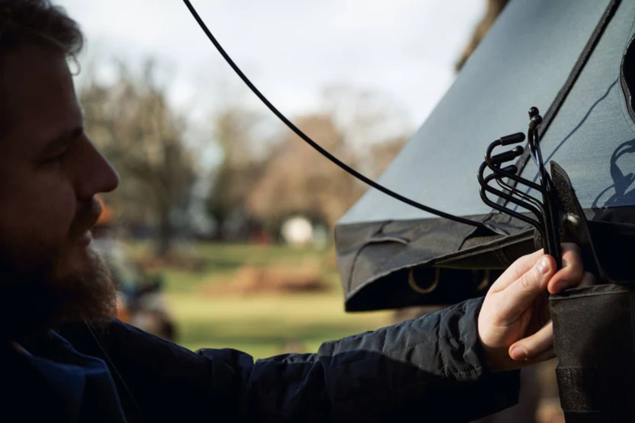 - Fabric (pod) – 280gsm rip-stop polyester canvas, with a 3000mm hydrostatic head rating. C6 DWR (water-repellency), 2400mm/24hr breathability and UV50+ protection. PVC-backed cordura trim for added durability.