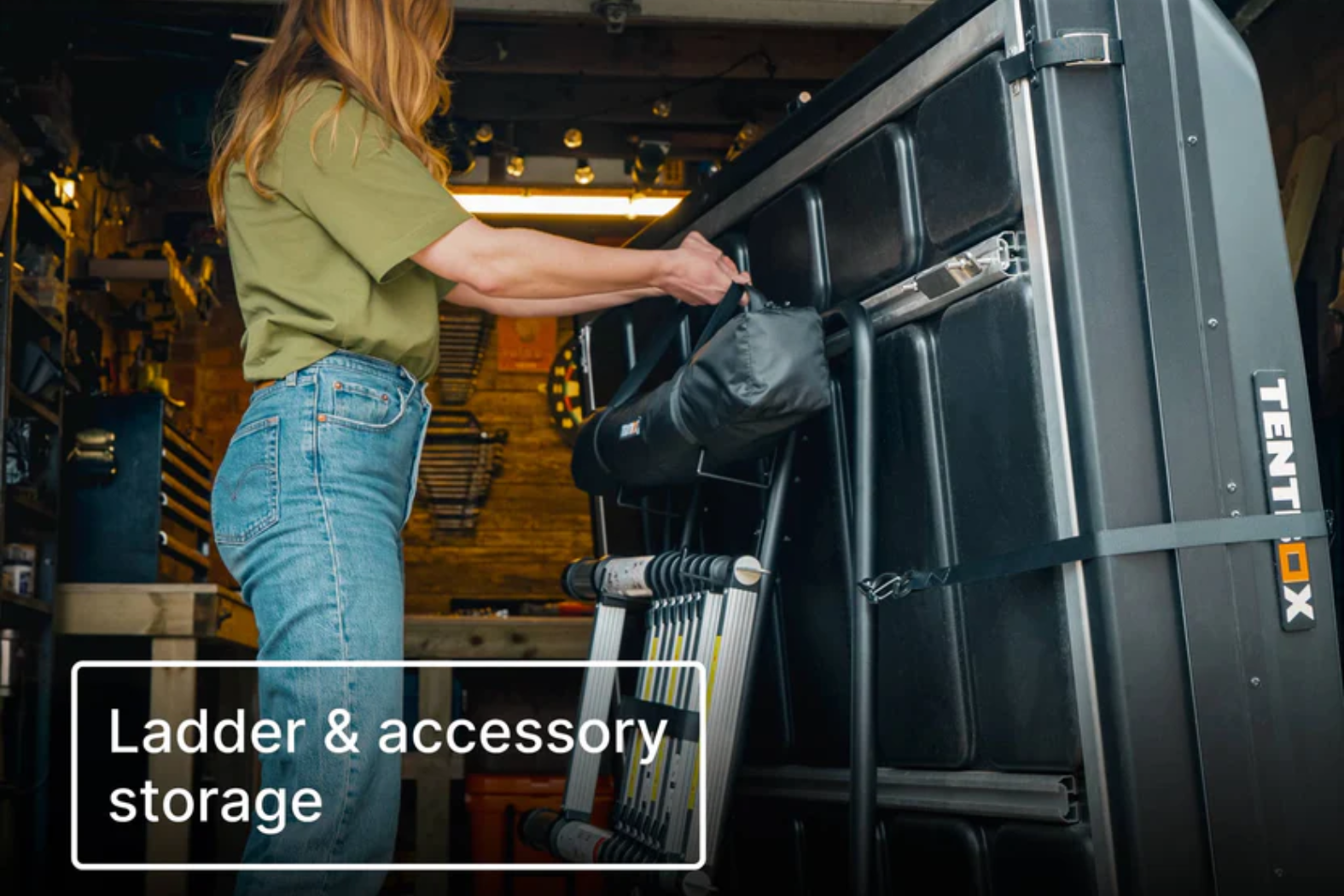 - J-Hooks for Accessories – Conveniently store your TentBox accessories with integrated J-hooks, keeping everything organized and accessible.