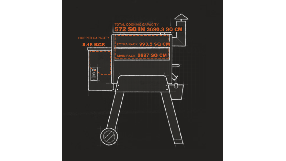 A hopper which holds 8KG worth of pellets means you can set and forget your cooking in confidence that you won’t run out of fuel. Two meat probes mean you can monitor your cook without opening the lid, losing your heat or smoke you’ve built up in the cook box. This gives a greater thermal efficiency and no wasted pellets heating the cook box back up after you’ve let all the heat out. So, knowing exactly what temperature your meat is means you will no longer be serving raw or underdone meat.