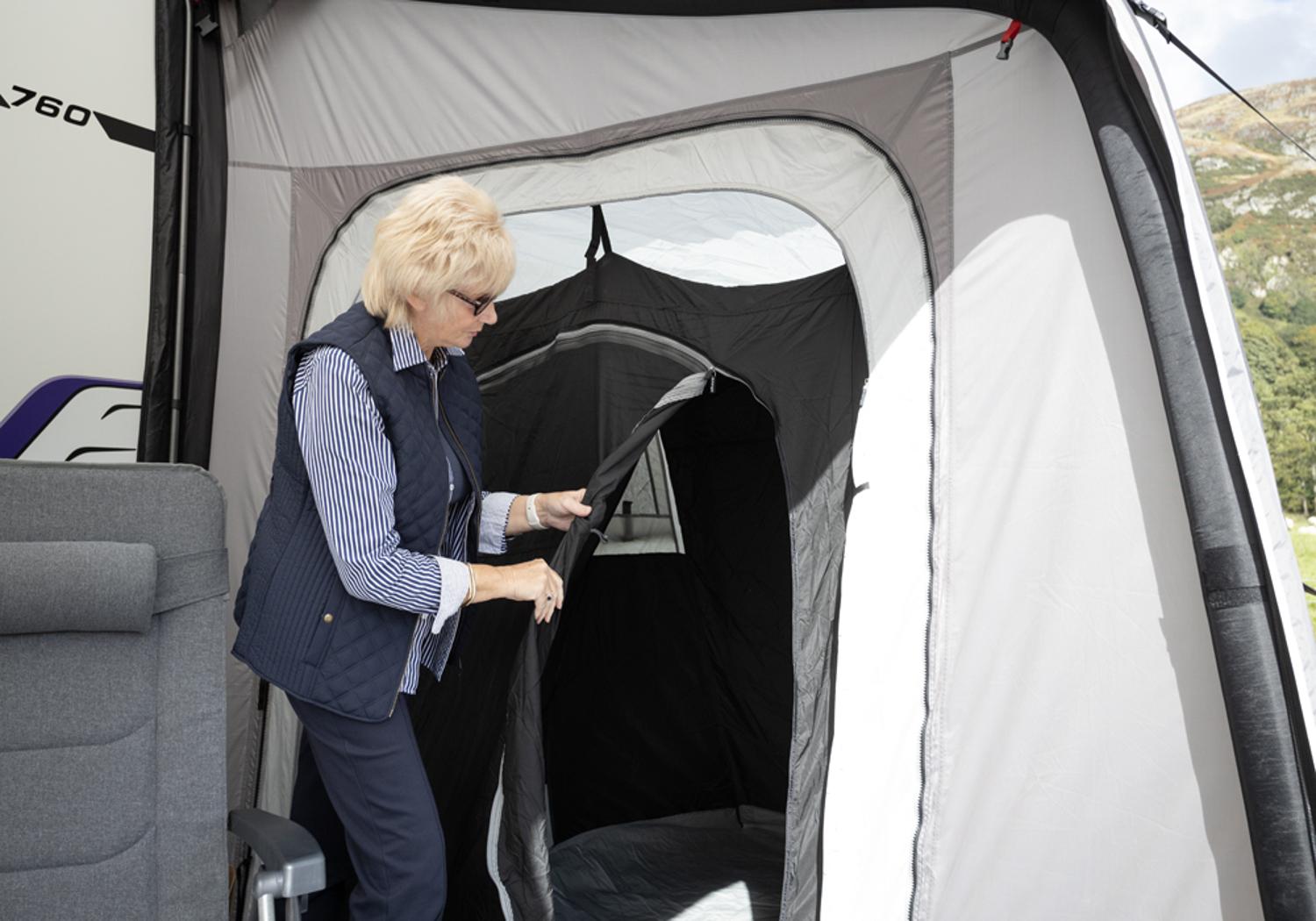 With an impressive 390 cm connection width, the Balletto Air 390 offers ample space for dining, lounging, or accommodating guests. Furthermore, panoramic windows allow light to flood the interior, creating an inviting and airy atmosphere. In addition, zip-up curtains provide privacy when needed, while optional mesh panels and extensions enable easy personalisation for every journey.