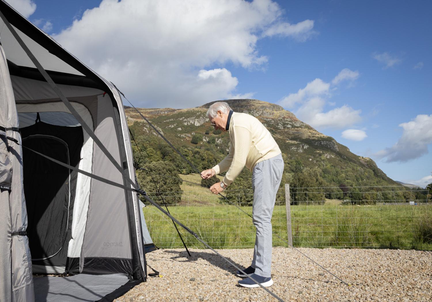Setting up the Balletto Air 390 is quick and simple. Inflate using the supplied hand pump and secure the awning with strong pegging points for stability. Moreover, the lightweight yet sturdy design ensures easy transport and compact storage. In addition, its easy-clean finish keeps it looking fresh after every trip, minimising maintenance while maximising enjoyment.