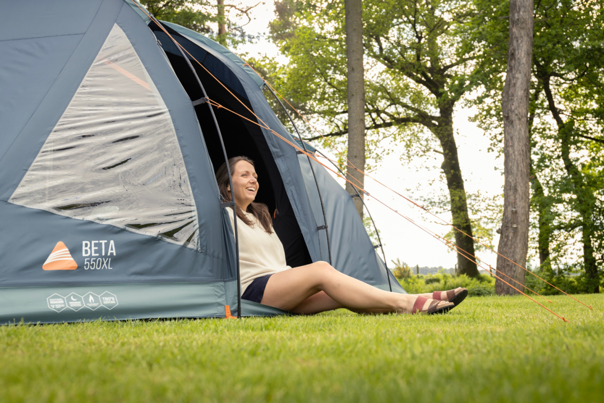 Inside, the Beta 550XL sleeps up to five people in a roomy sleeping compartment. Moreover, the “Midnight Bedrooms®” reduce morning light, allowing for longer, more restful sleep. The extended porch area offers flexible storage and a sheltered sitting space, which is ideal for cooking in poor weather or organising camping equipment. In addition, Diamond Clear windows brighten the living zone, creating a more open, pleasant atmosphere. Because of the intelligent tunnel design, both sleeping and living areas feel balanced and practical for everyday campsite life.