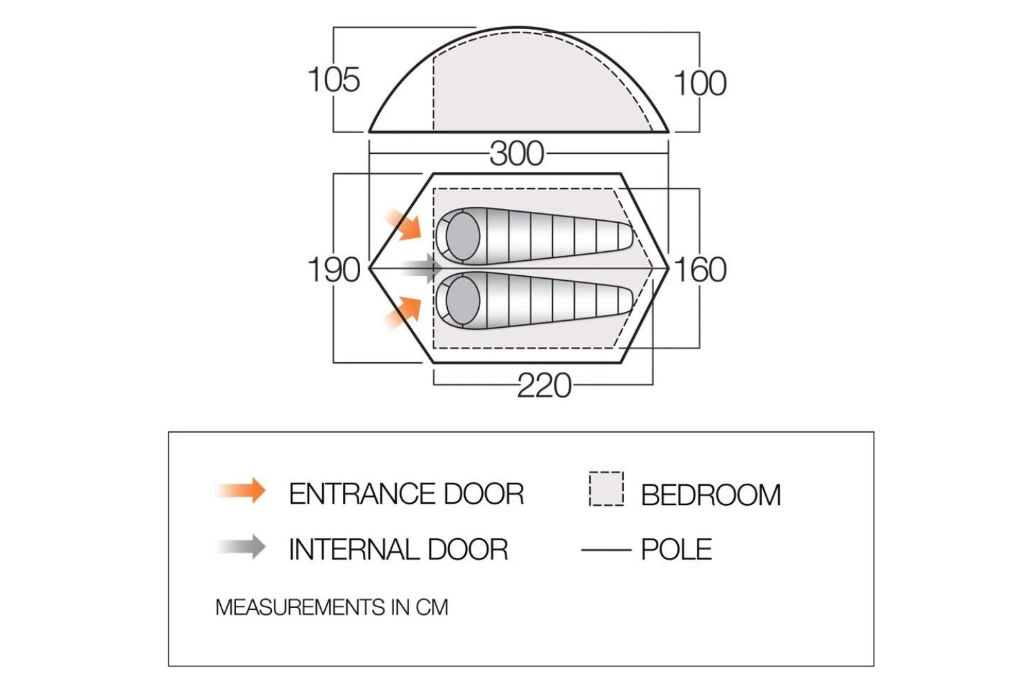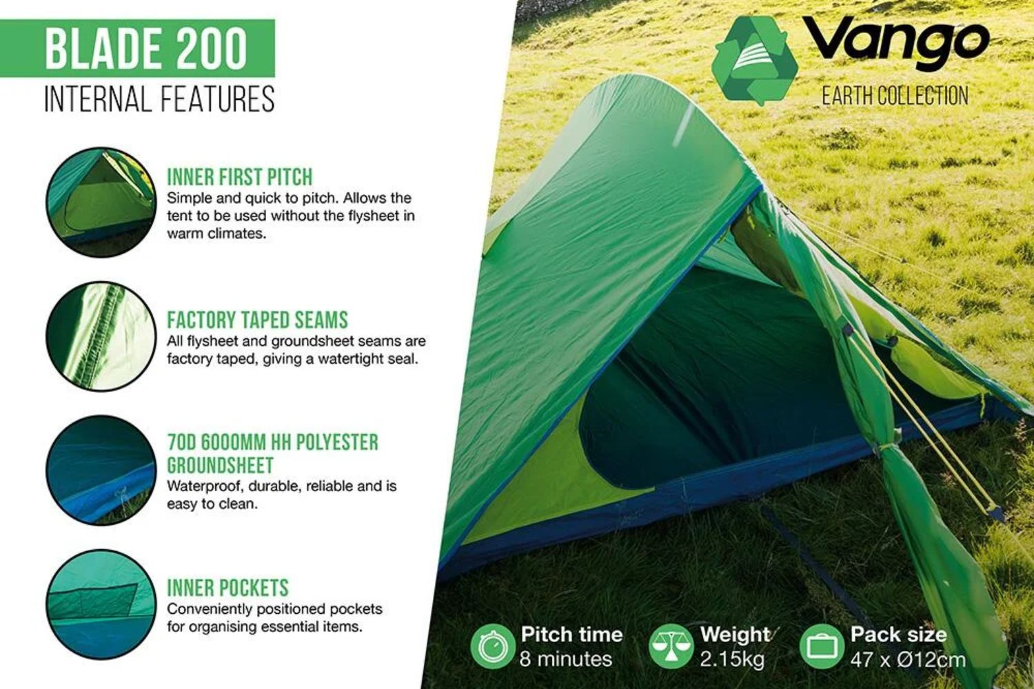 The Vango Blade 200 Tent is a super-quick-pitching tent, with one-pole construction. It has a small pack-size and low weight – perfect for back-packing.