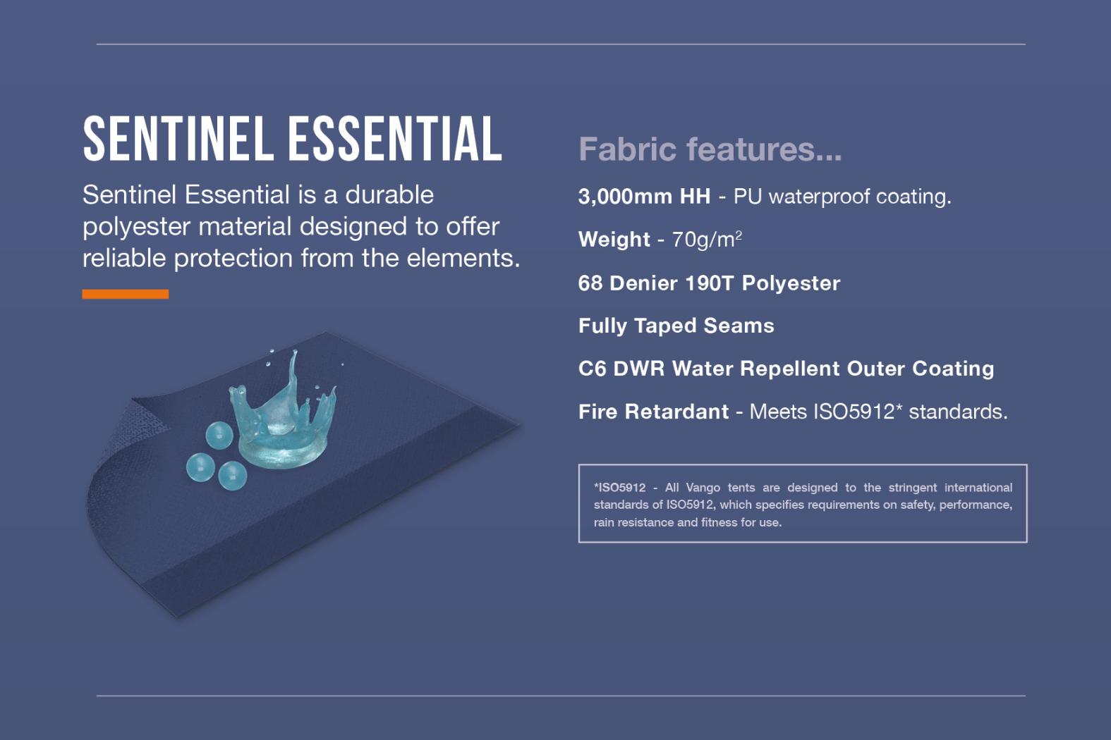 • Sentinel Essential recycled polyester flysheet — eco-conscious and waterproof (3,000mm HH waterproof rating)