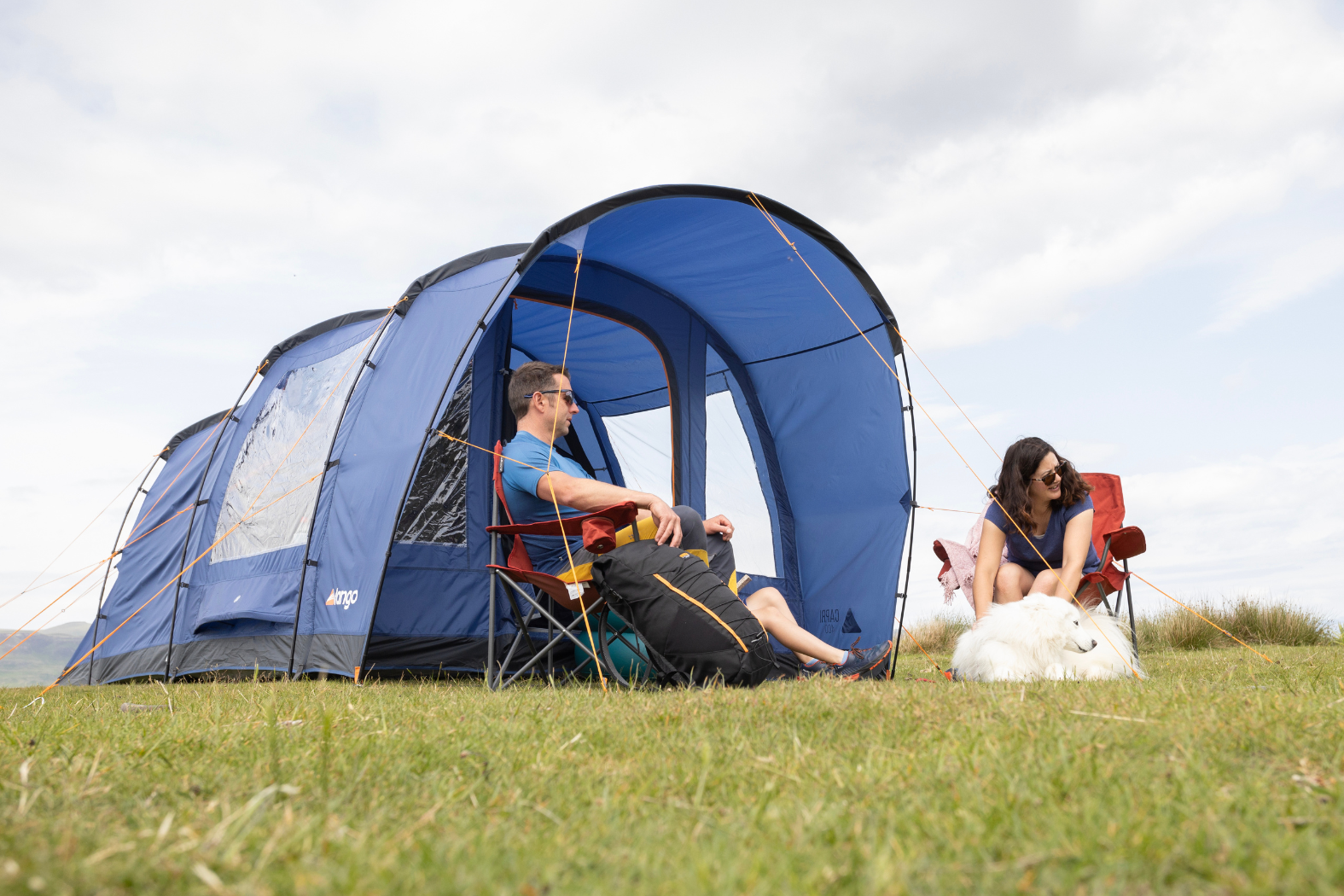 The Capri 400 includes mesh doors and ventilation panels to promote airflow and help reduce condensation — a must for warm nights or damp weather. Large Diamond Clear windows bring in natural light and help keep the living room bright and welcoming. The structure uses colour-coded fibreglass poles for straightforward pitching. Consequently, setup takes minimal time and fuss. The tent also features an adjustable pegging system and high-visibility guylines to improve stability — even on uneven ground.