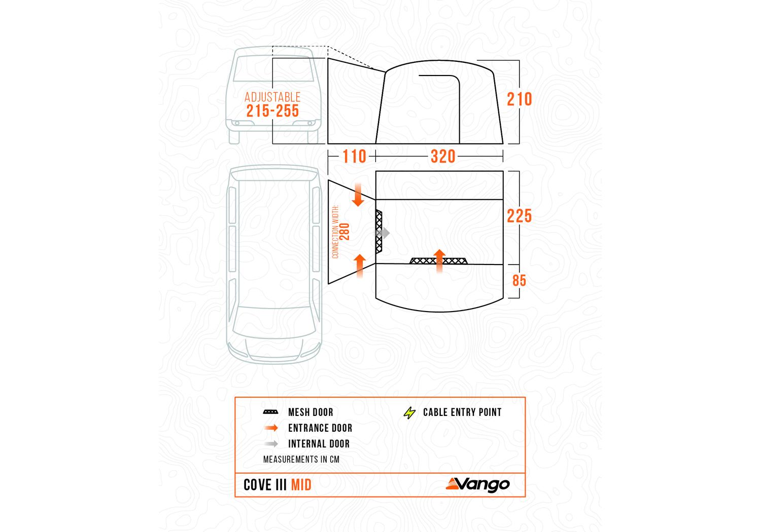 Travel with confidence using the Vango Cove III Poled Mid Awning 2026 – the upgraded version of Vango’s popular drive-away awning, now refined for easier pitching, greater stability, and improved all-weather protection. Designed for mid-height campervans, this versatile awning expands your living space and keeps you sheltered in style, whether you’re touring the coast or heading into the countryside.