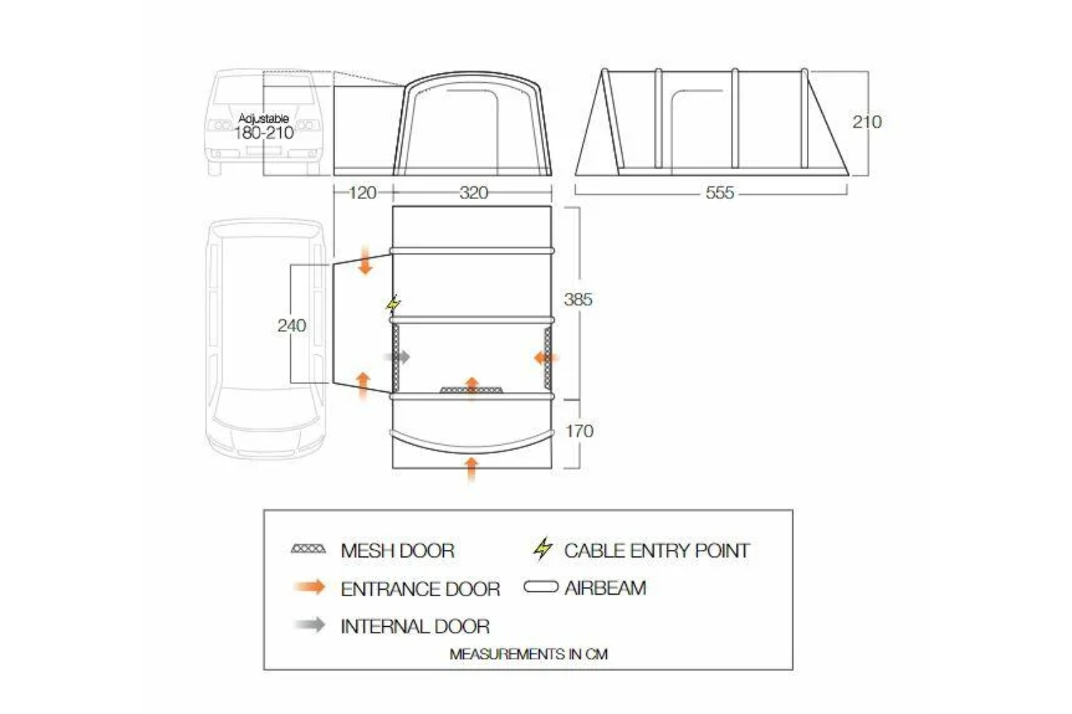 Vango Galli Pro Air DriveAway Awning fits vehicle height