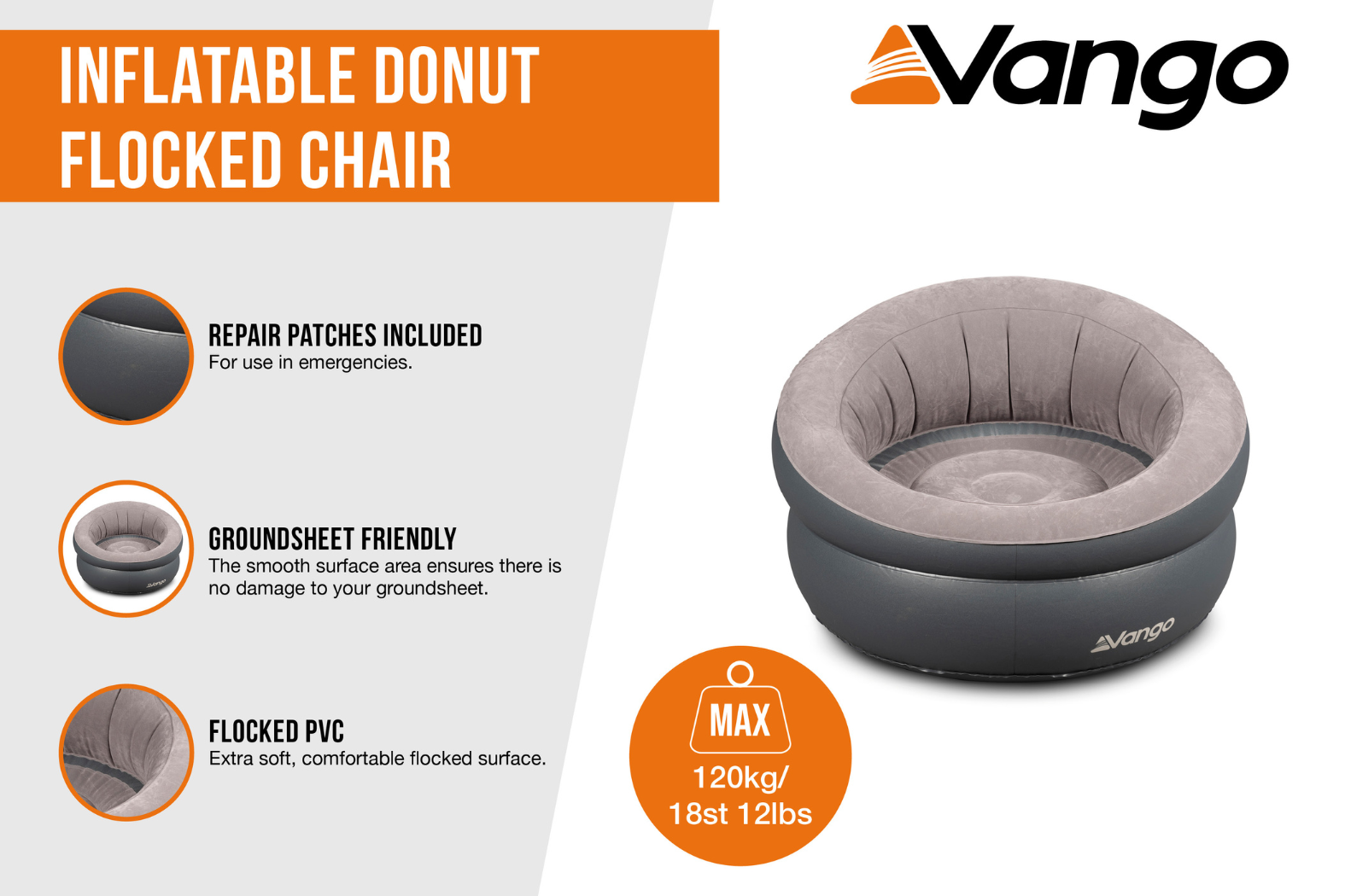 - Comfortable Vango Inflatable Donut Flocked Chair with cushioned circular design