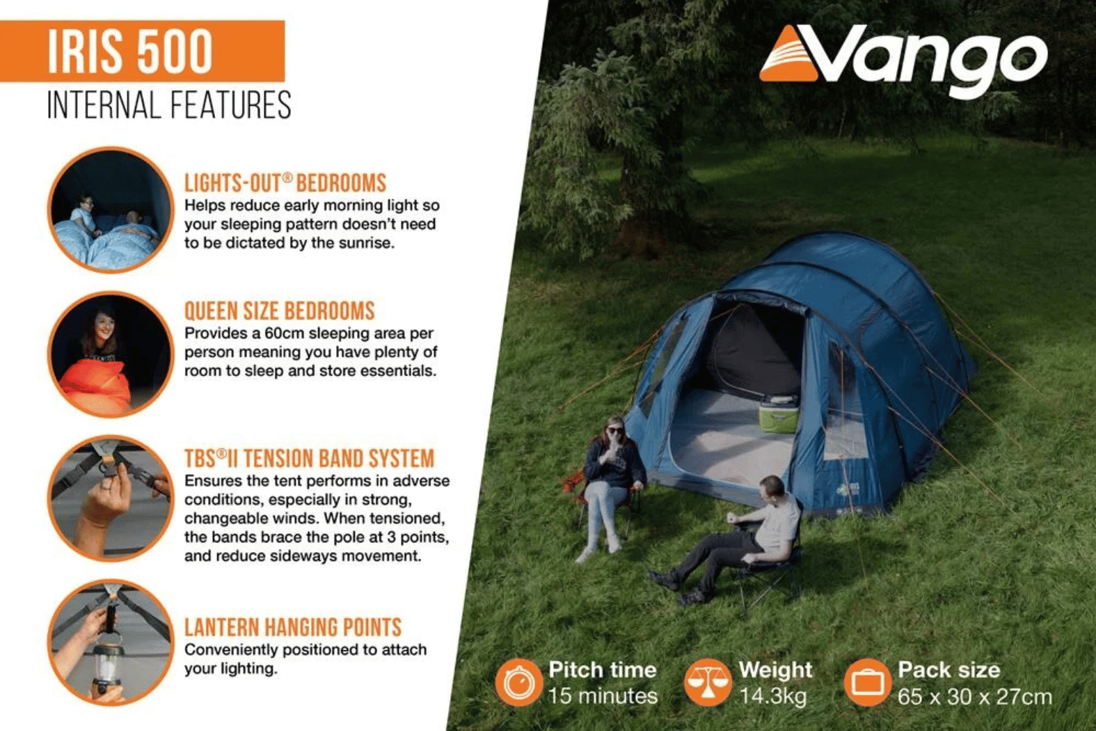 Incredibly popular with families, and couples looking for extra space. The Iris 500 from Vango sleeps up to five people in total comfort and luxury.