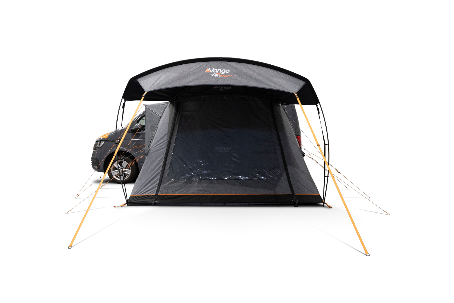 The Vango Kela Air Low Edition 60 Drive Away Awning uses AirBeam® inflatable beams for rapid, pole-free setup. Therefore, you can pitch the structure in approximately eight minutes using the included pump. The roll-away connecting tunnel allows you to detach your vehicle during the day while keeping the awning freestanding. In addition, dual tunnel access doors improve movement between your vehicle and the awning.