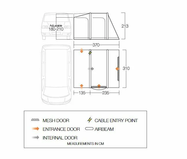 The Vango Kela Air TC low drive away awning inflates quickly and is a great place to spend time with friends and family. The Kela features four different ways to attach to the side of your campervan, and the tunnel space makes the perfect storage room or corridor, keeping your awning and vehicle clean and dry.