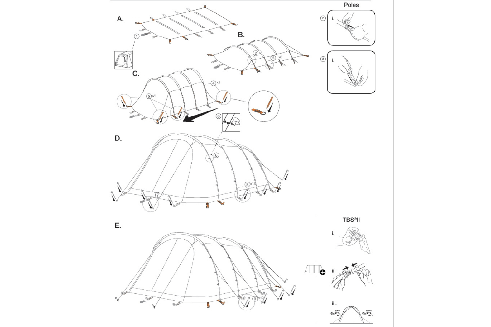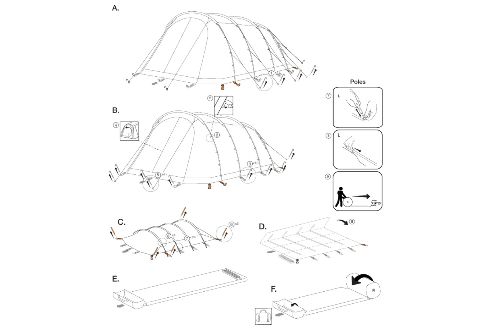 | Poles | Vango PowerFlex® fibreglass poles, pre-angled for improved interior height |