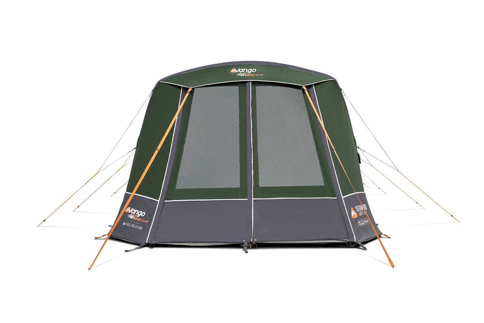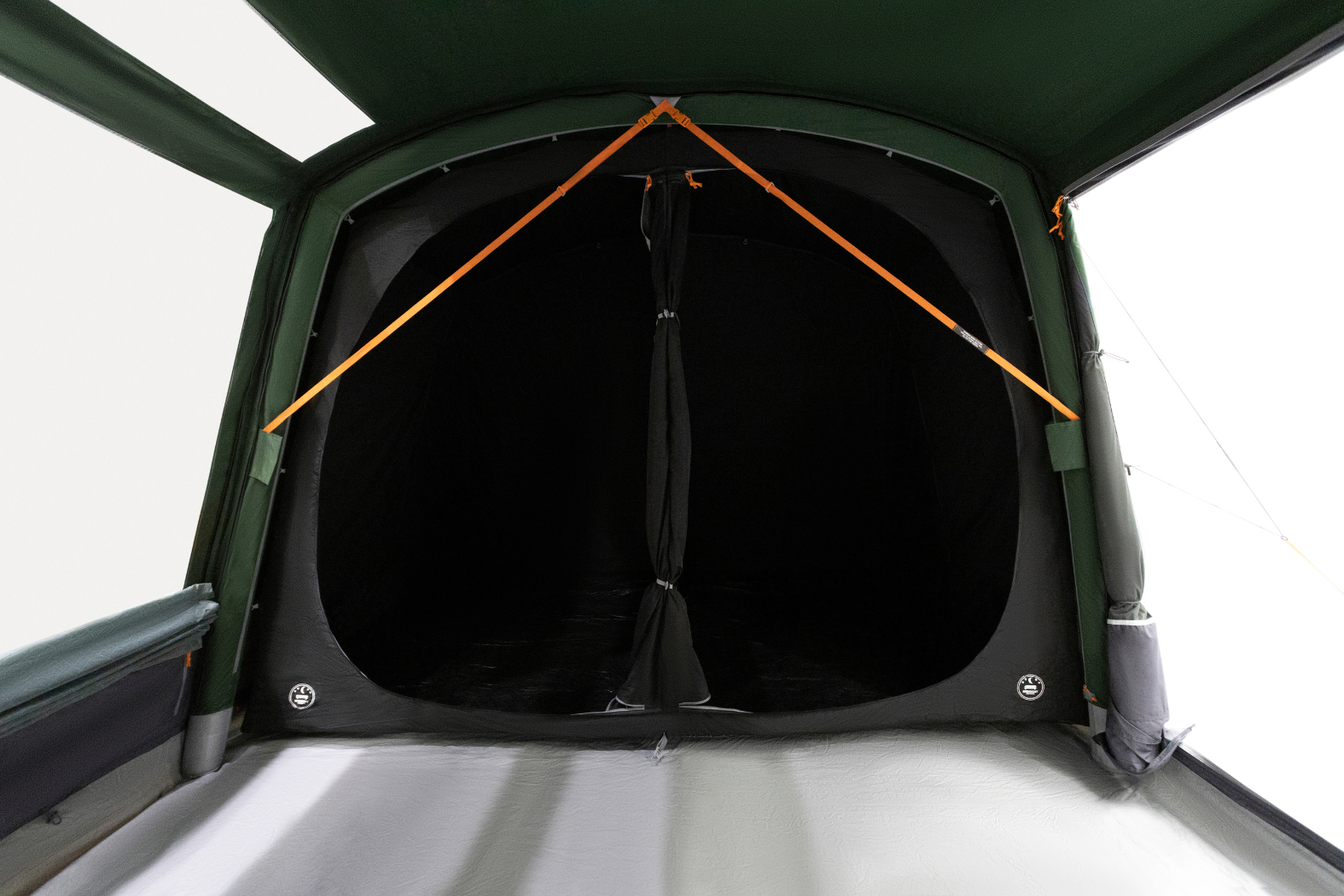 The Sherwood Air TC 400 includes mesh doors, high- and low-level ventilation panels and the Vango AirZone system to support airflow. Moreover, SkyTrack® II hanging points allow flexible lighting and storage. In addition, the sewn-in groundsheet creates a draught-free environment. Drop-down steps improve accessibility for prams or wheelchairs. Furthermore, the included groundsheet protector increases durability and simplifies pack-away. The AirSpeed® valves ensure quick inflation and deflation.