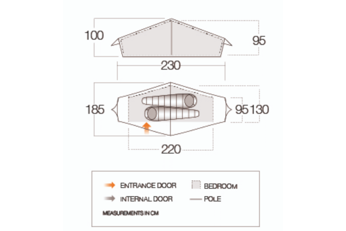 - 2 person tunnel tent with strong space-to-weight balance