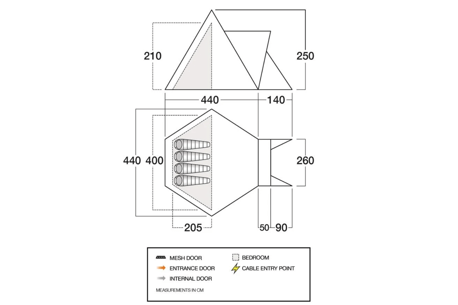Breathable Polyester Inner Bedroom – Allows condensation to pass through, for a comfortable night’s sleep