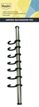 Awning Multi hanger Pro – Made from lightweight aluminium and designed to work in conjunction with Caravan & Motor-home Awnings, Camper-vans, Tents, Gazebos or additional hanging space in or around the home. This coat hanger is produced in a high-polish aluminium finish and comes with 7 pre-attached plastic hooks so that it can be hung anywhere within easy reach, each end has a plastic end stop which holds the plastic hooks in place to stop them from sliding off either end of the hanger. Size; length 45cms, Complete with 7 hooks