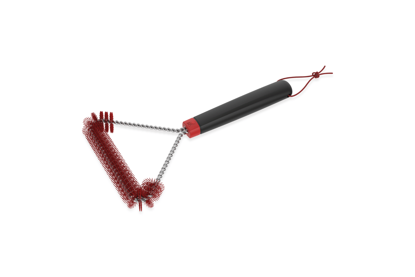 This three-sided barbecue brush is made to remove grease and debris from cooking grates of all sizes.
