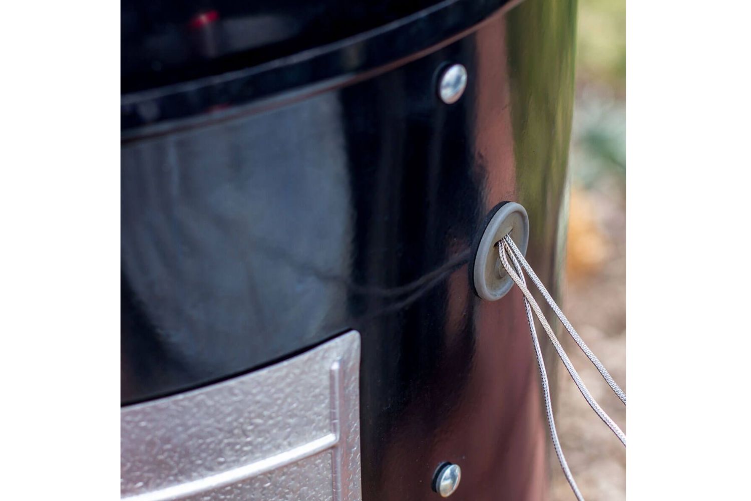 The exterior of the Weber Smokey 47 cm Cooker features porcelain-enameled steel components for heat retention and weather resistance. The bowl, lid and centre ection carry a 10-year limited warranty against rust or burn-through. In addition, the silicone grommet allows you to monitor meat temperature without lifting the lid, keeping your smoke consistent and your results outstanding.
