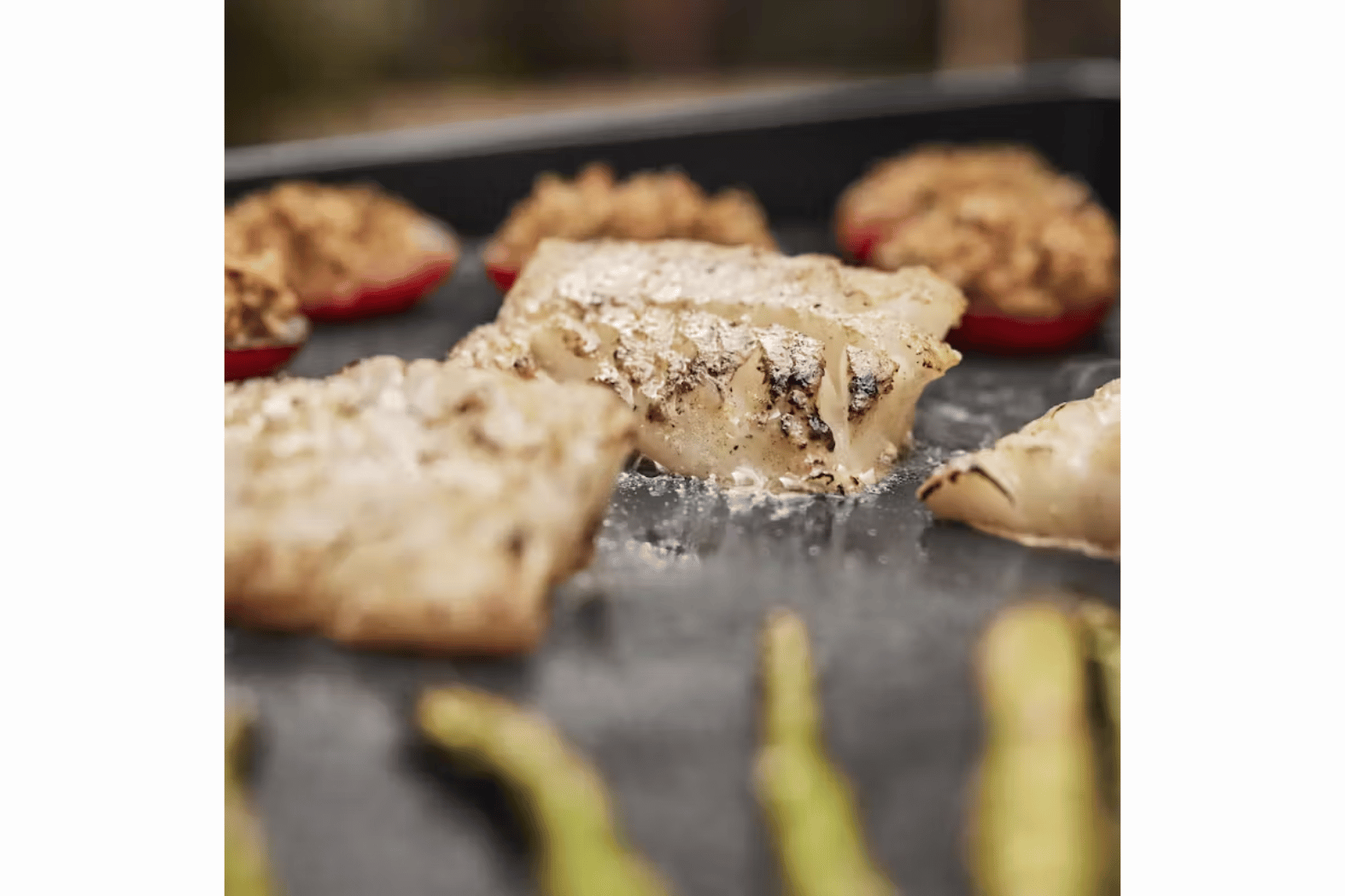 The Weber Slate 56cm Plancha features a stick-resistant, porcelain-enameled cooktop that is ready to use straight out of the box.