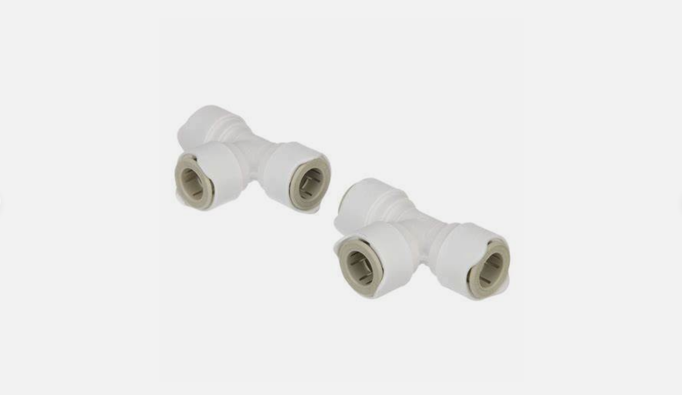 A pack of two Whale Quick Connect 15mm equal tees for use with Whale plastic tubing and grooved stems only.